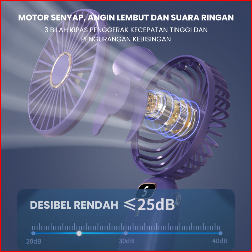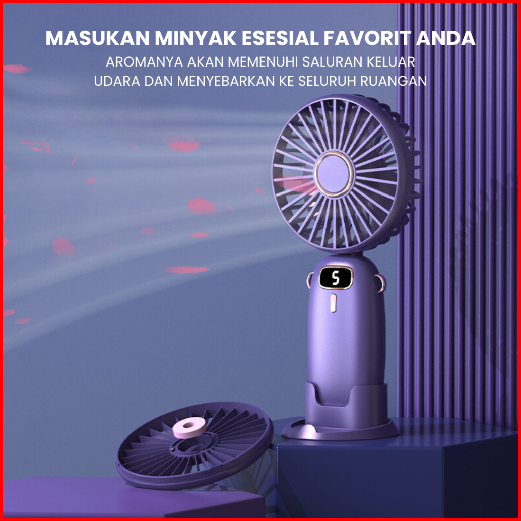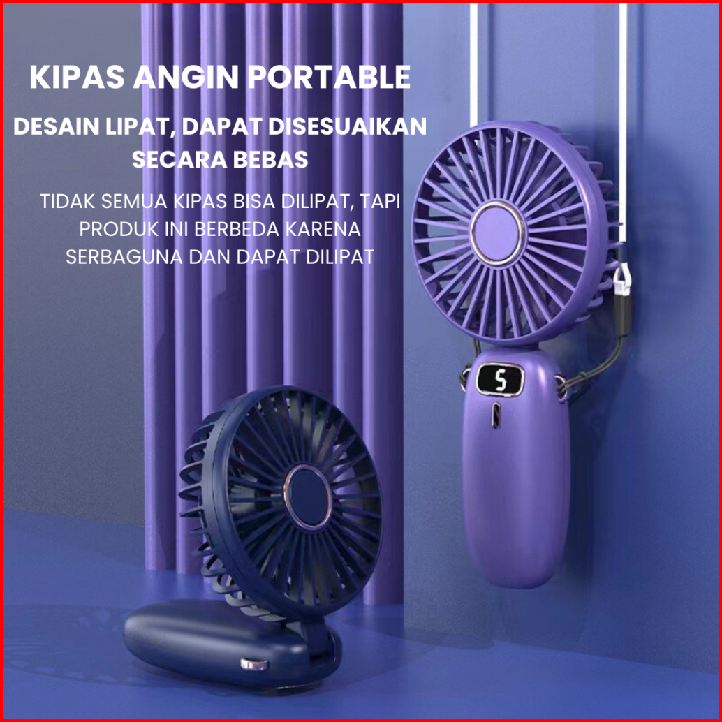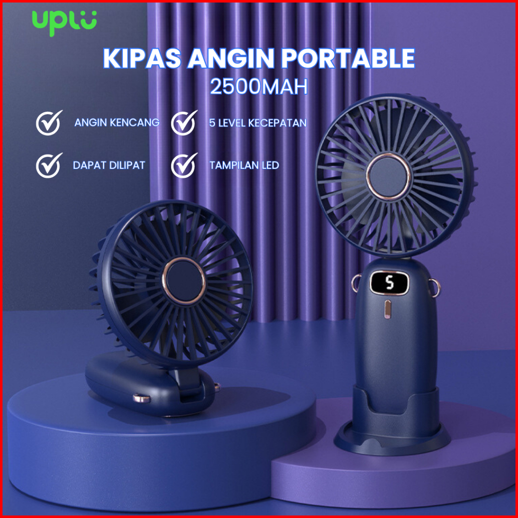 Wellup F2 Kipas Angin Mini Portable Phone Holder 2500 Mah Kipas Lipat Leher 5-speed Wind Led Display Rechargeable Fan