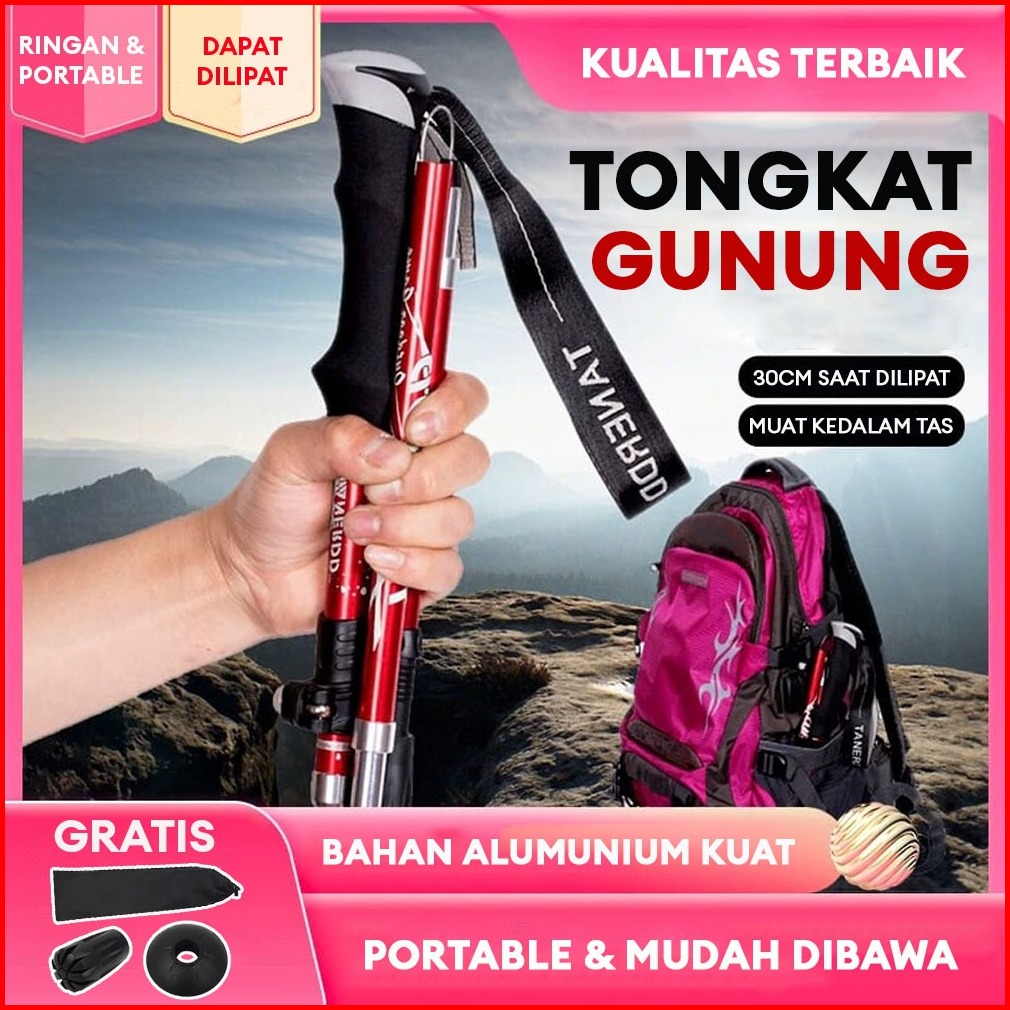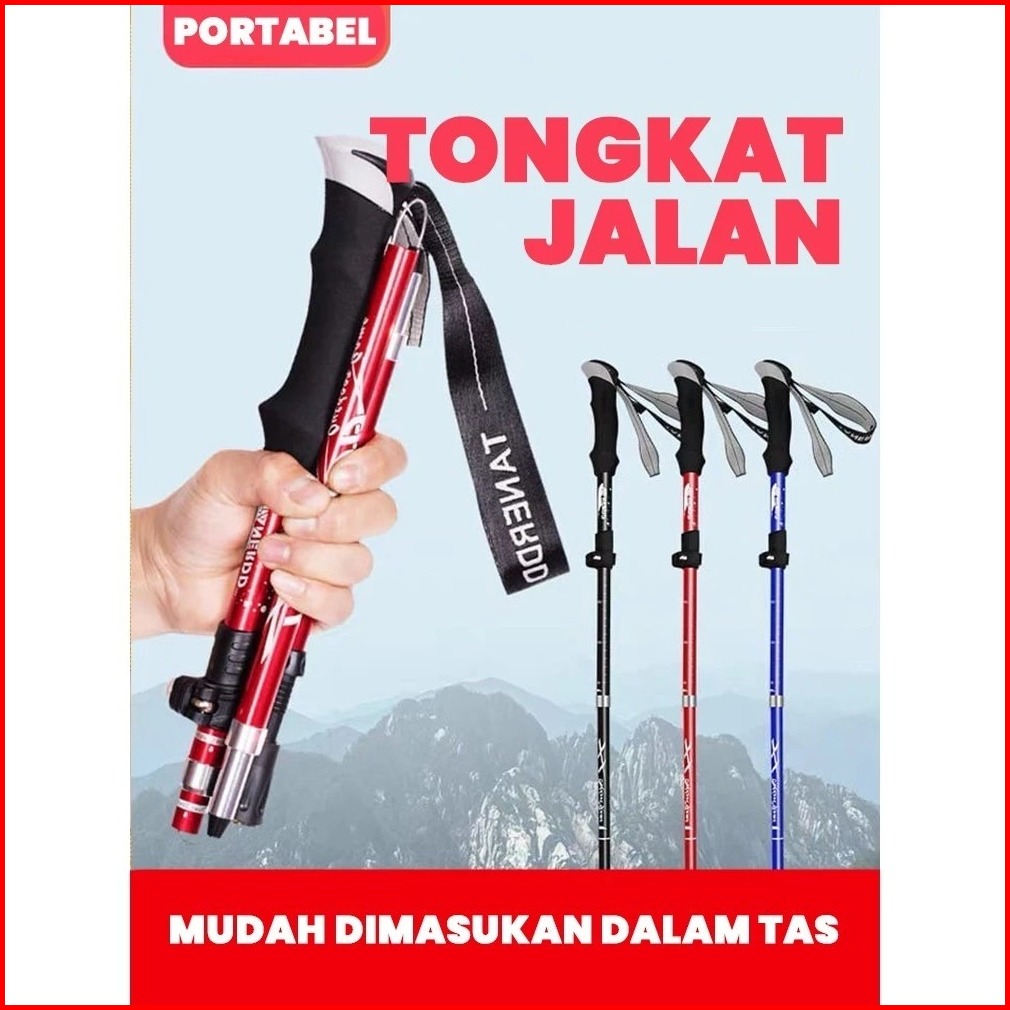 Bbak Trecking Pole Tongkat Gunung Tongkat Hiking Tongkat Jalan 110cm Bisa Dilipat Bahan Full Besi Alumunium Free Tas Pen