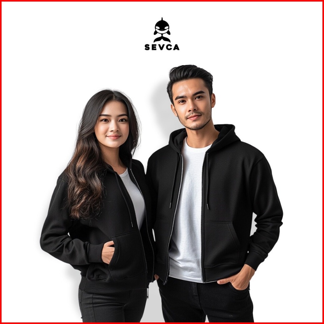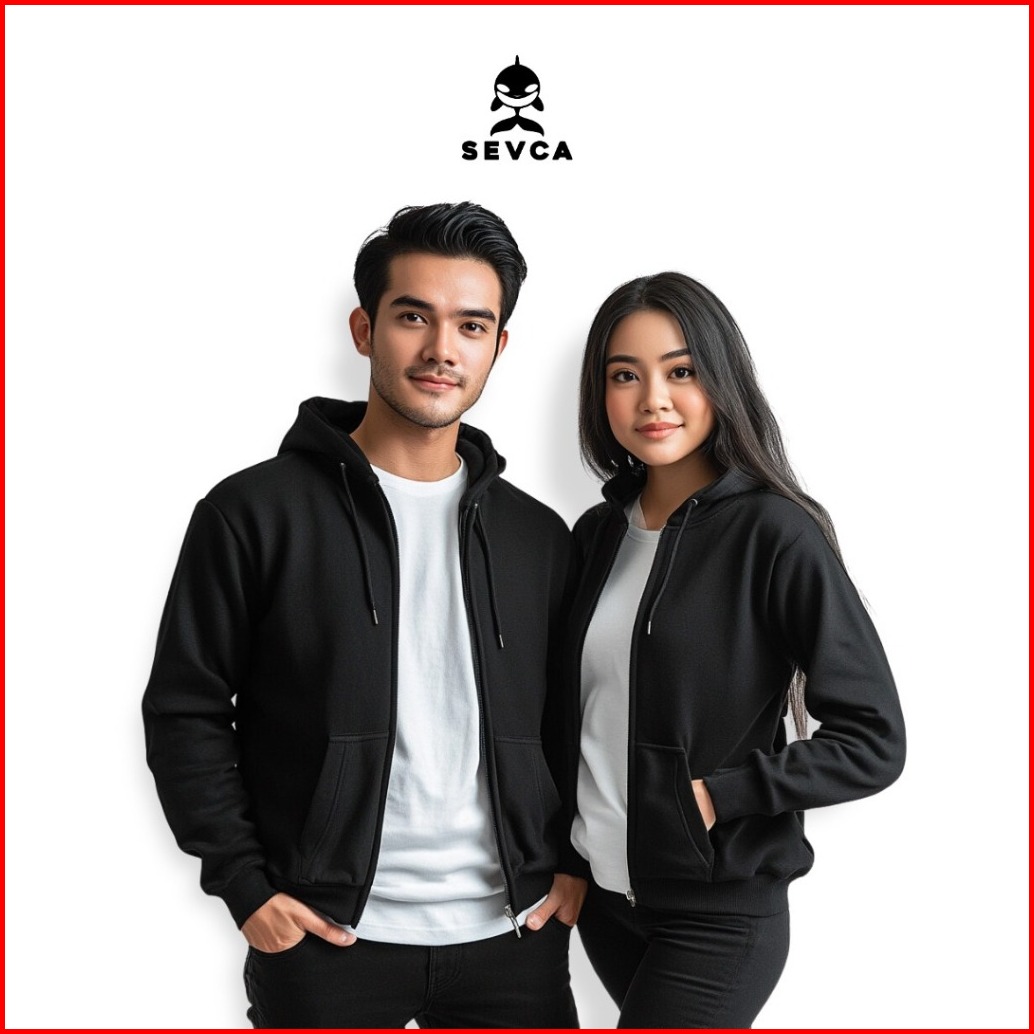 Sevca - Jaket Zipper Hoodie Polos Pria Wanita Unisex Size L - Xxl