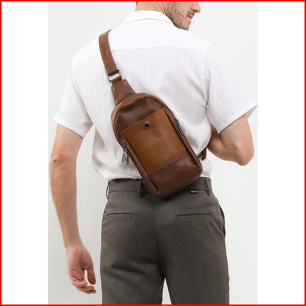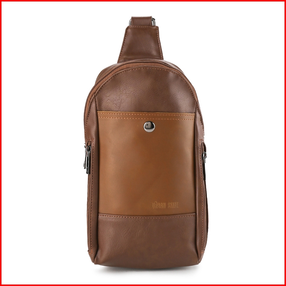 Urban State - Distressed Leather Commuter Slingbag - Camel