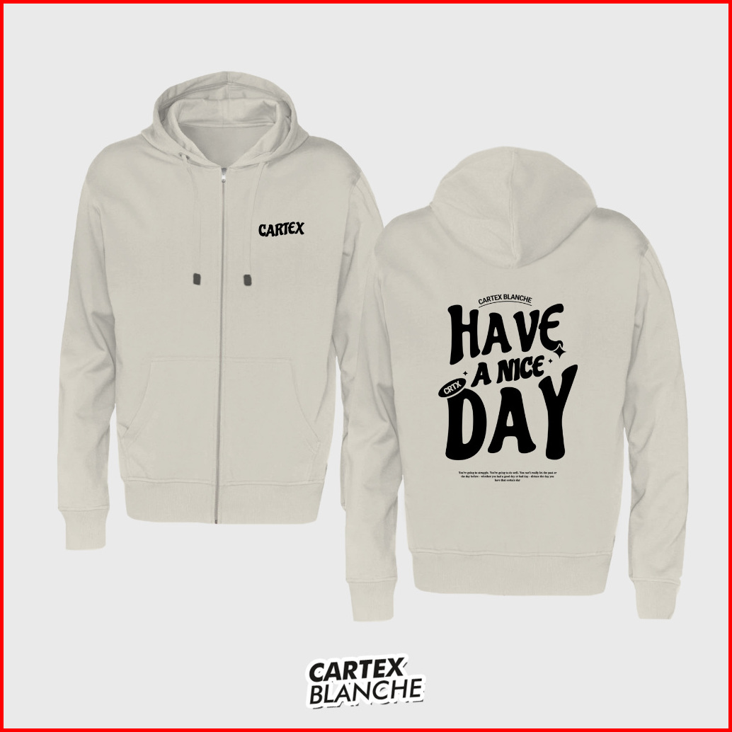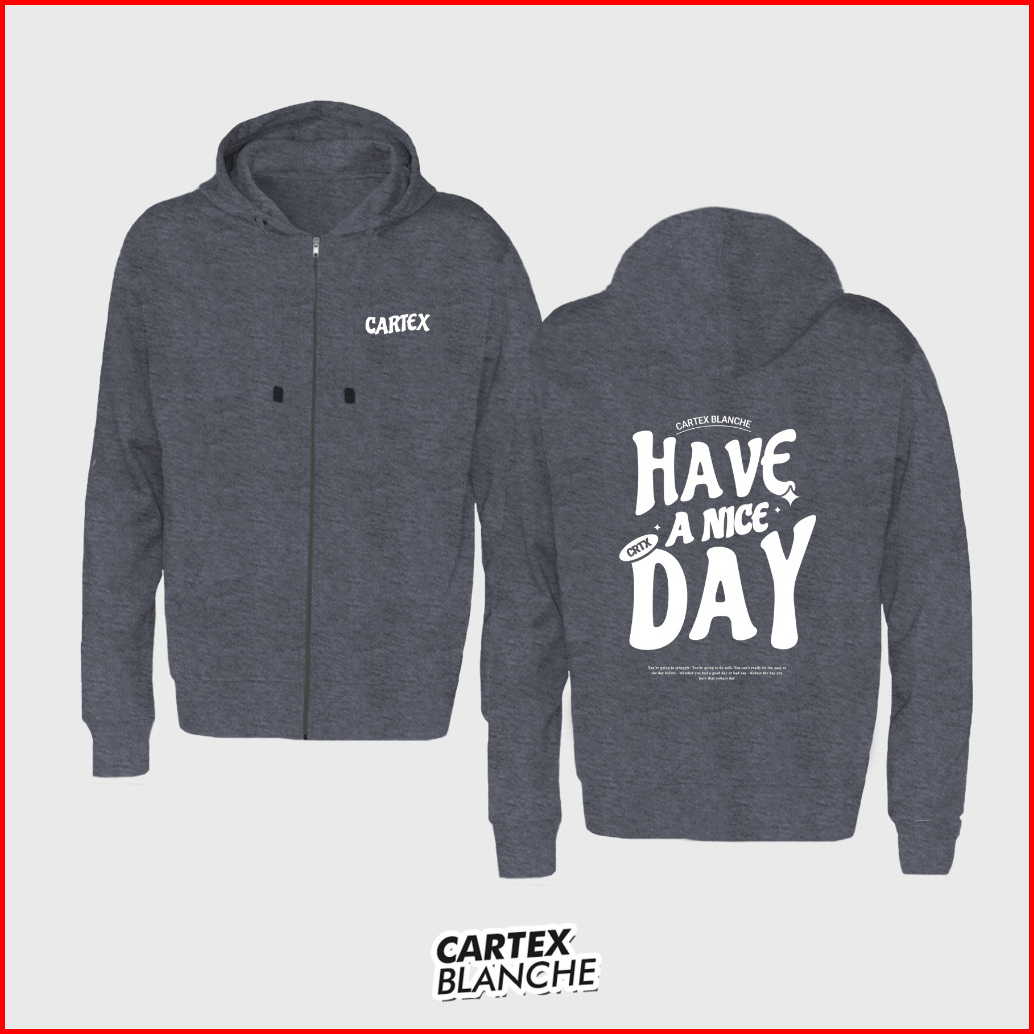 Cartexblanche - Have A Nice Day Jaket Hoodie Zipper Sablon Unisex Pria - Wanita Size M - Xxxl