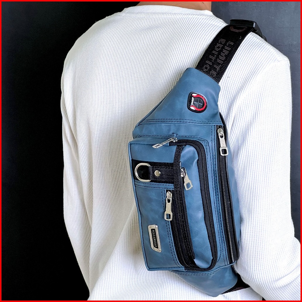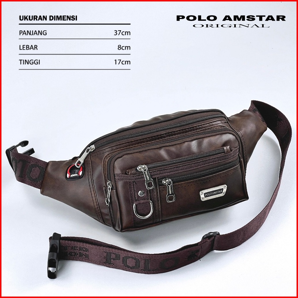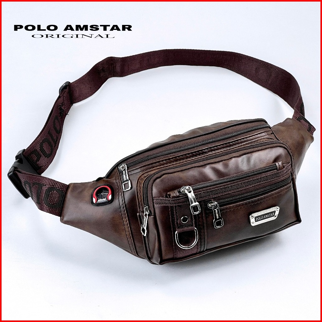 Tas Selempang Pria Polo Amstar Casual Premium Waistbag Slingbag Kulit Tas Pinggang Cowok Multifungsi
