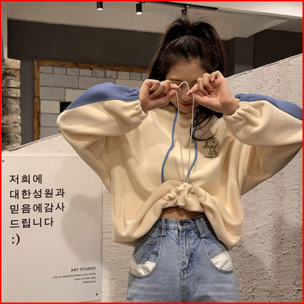 Bordir Snoopy Hoodie Sweater Wanita Oversize