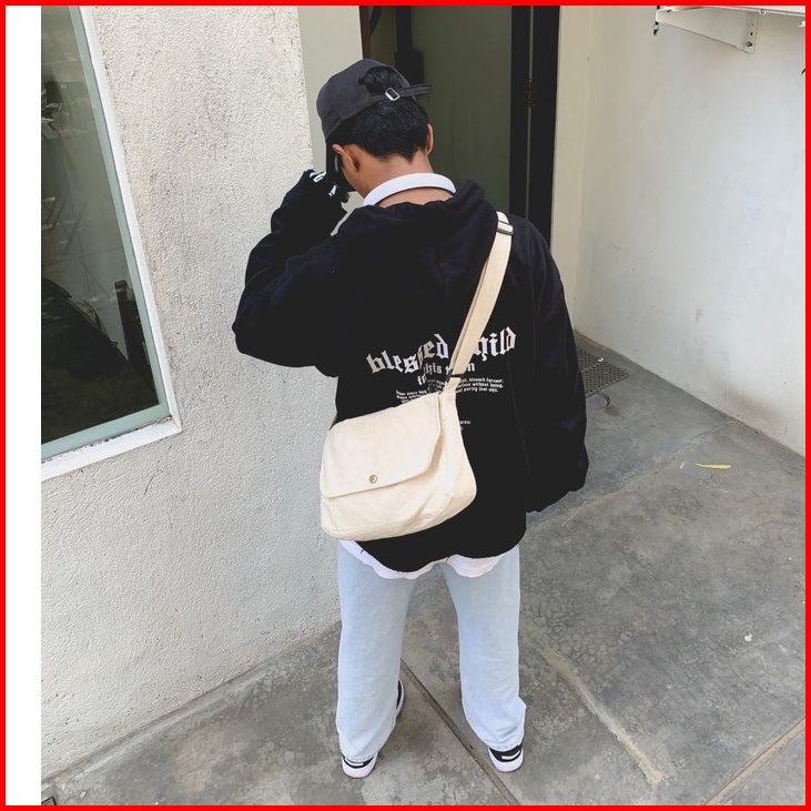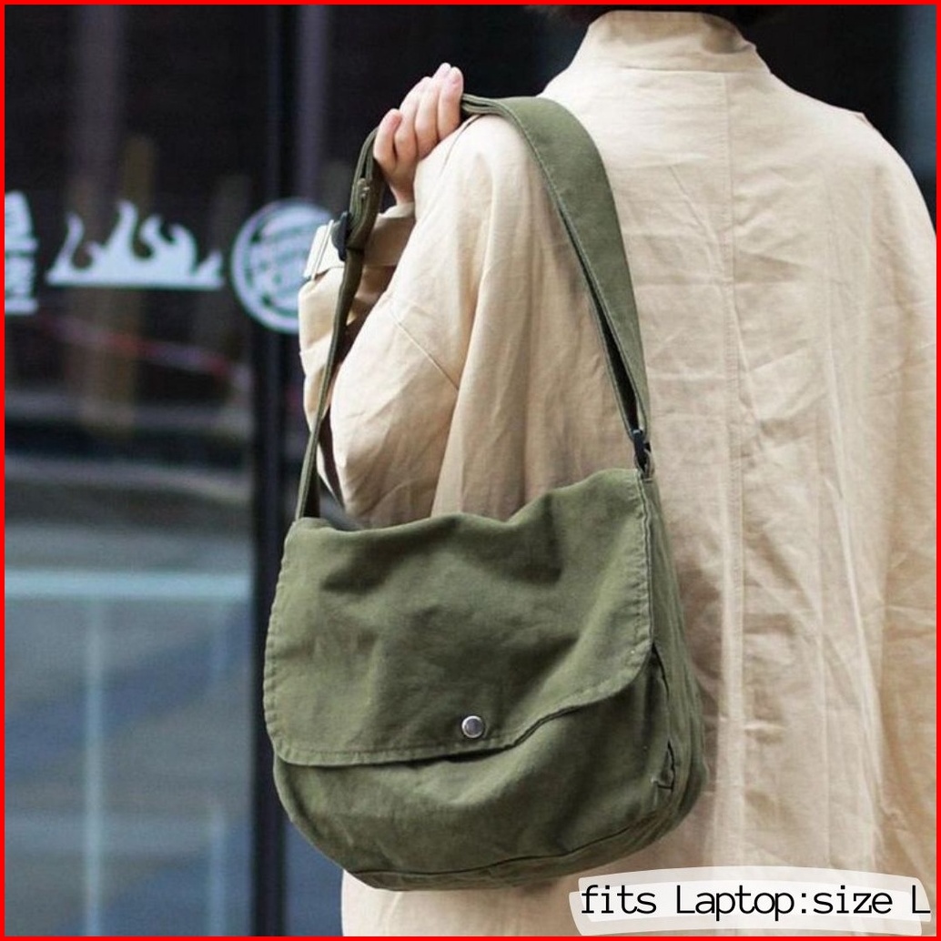 Sling Bag Canvas Size M L Tas Selempang Kanvas Pria Wanita Tas Vintage Korea Jepang