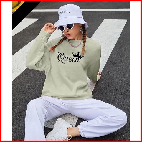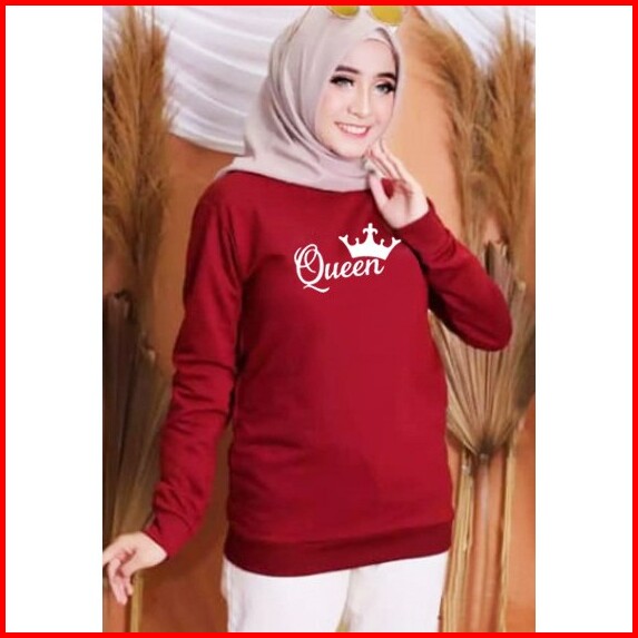 Kaos Lengan Panjang Queen Kaos Sweatshirt Atasan Wanita Atasan Wanita Lengan Panjang