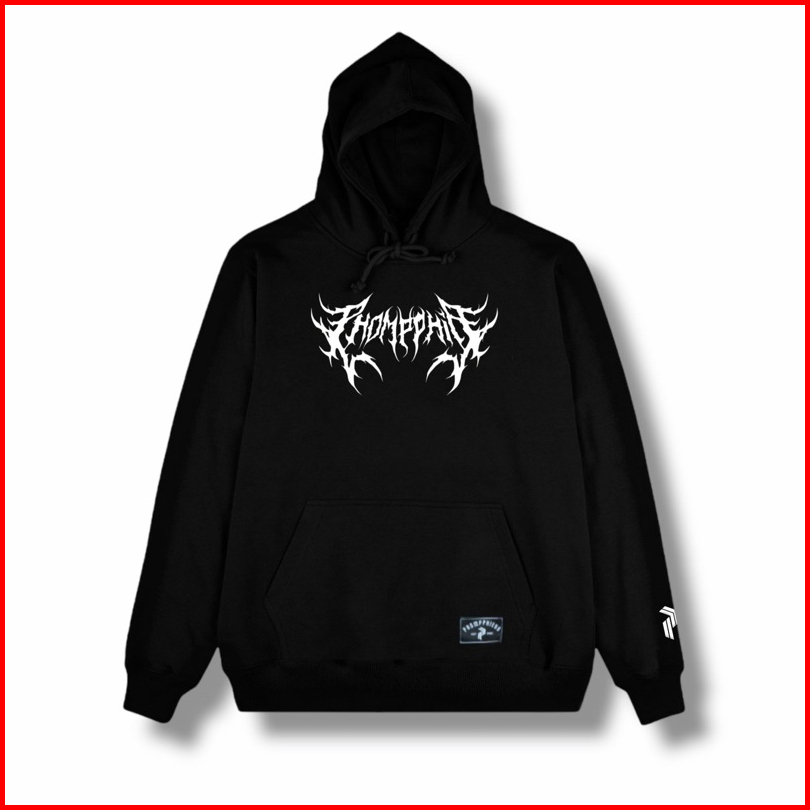 Phompphiess Hoodie Hitam Metal Bordir Sweater Pria Wanita