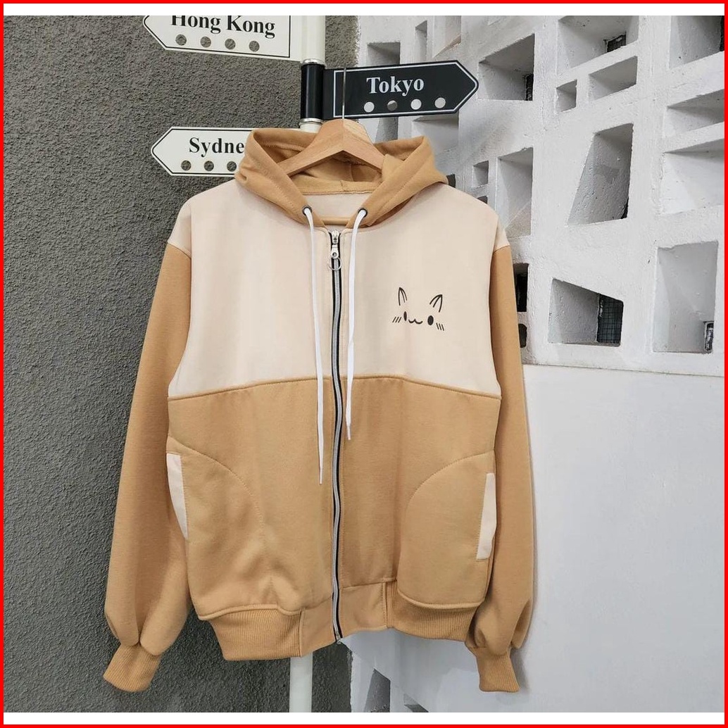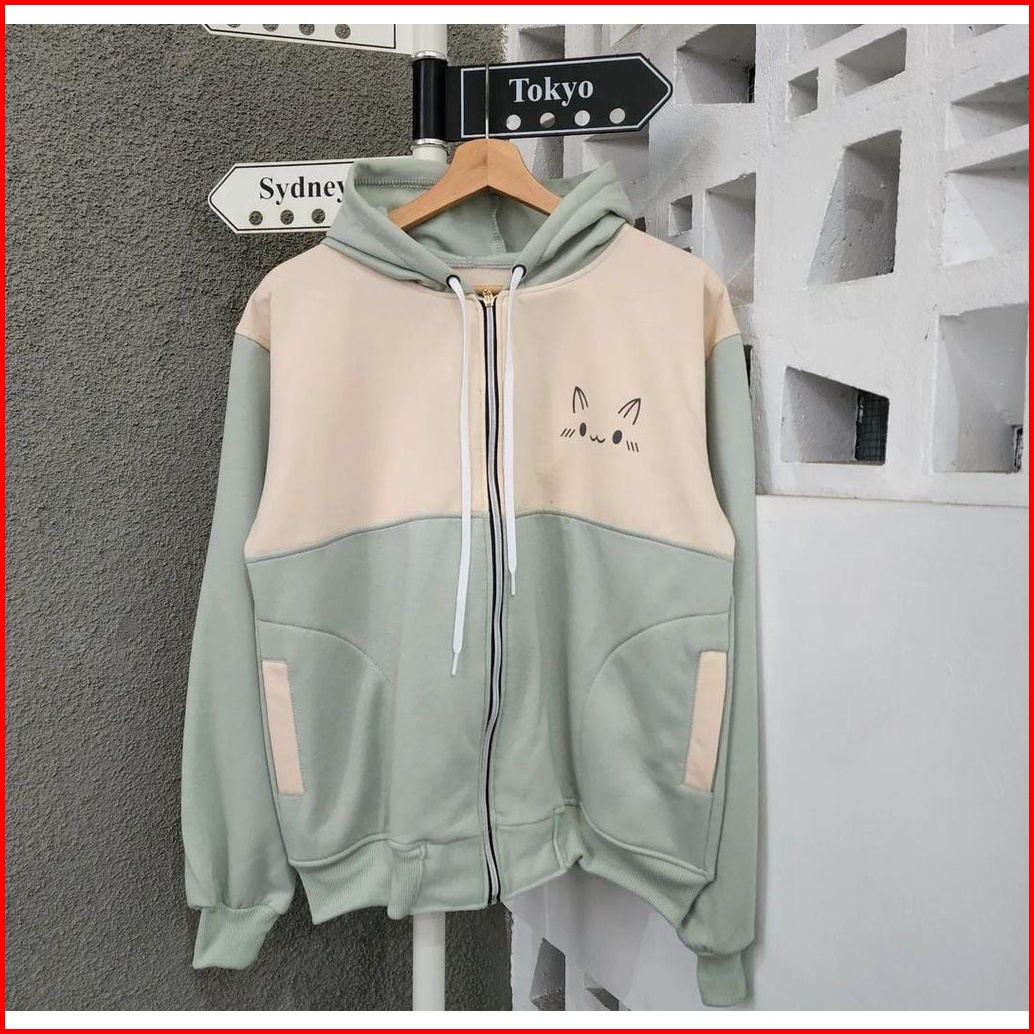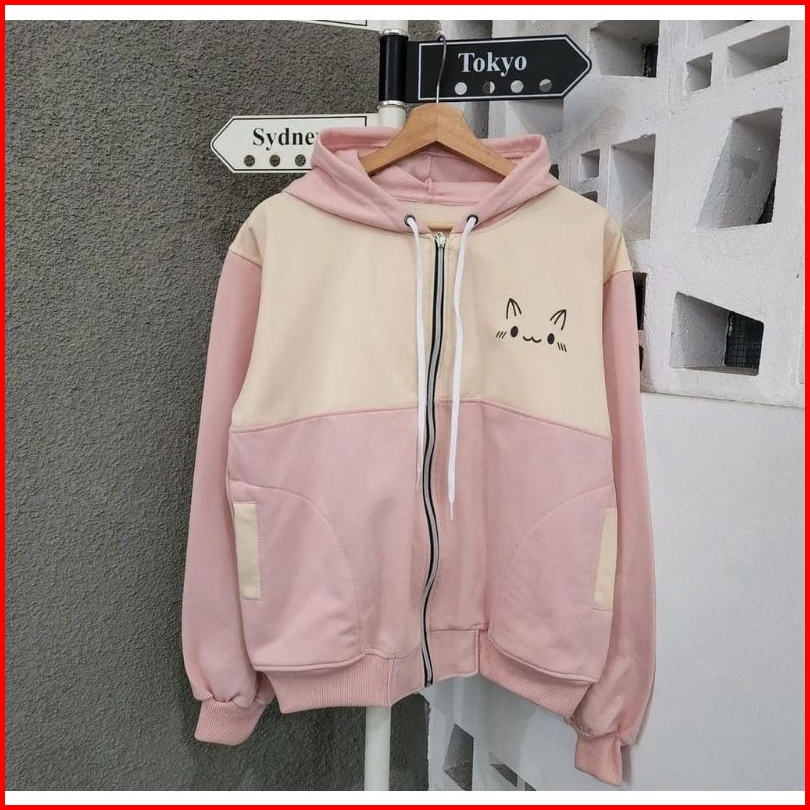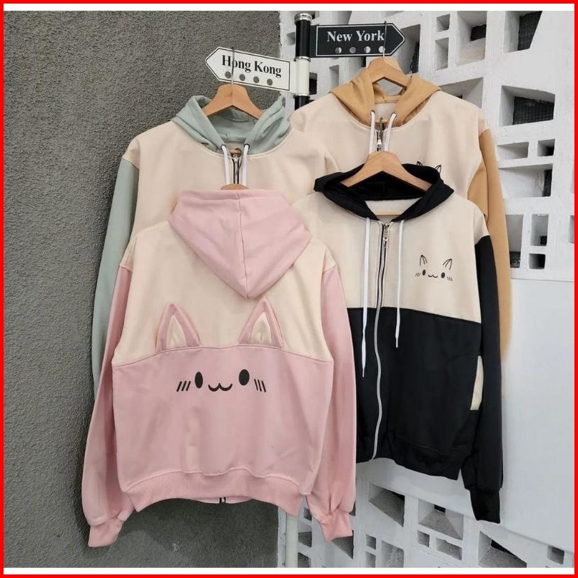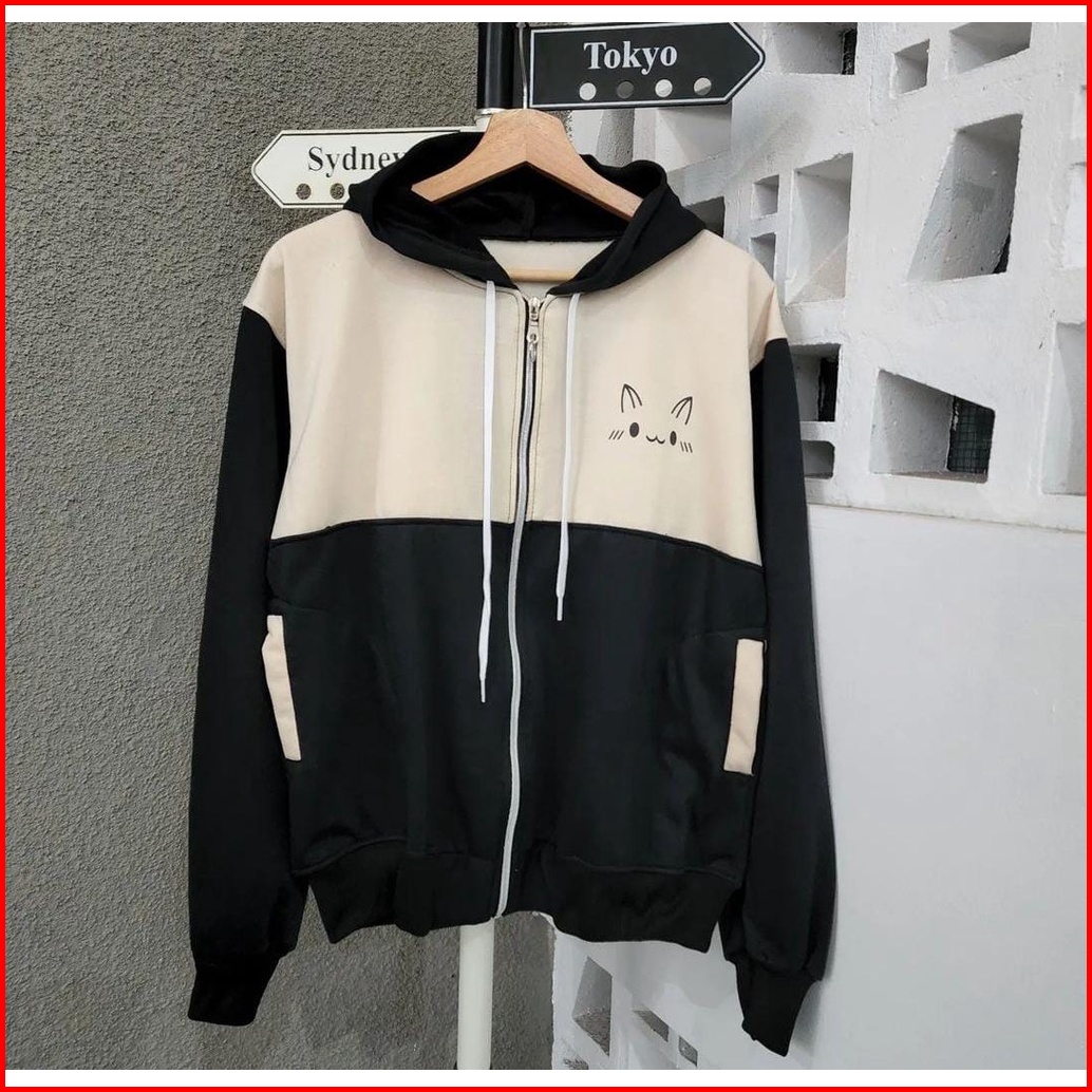 Ziper Cat Sweater Hoodie Jumper Kekinian Jaket Hoodie