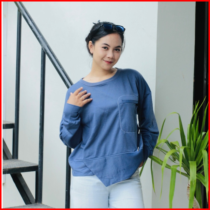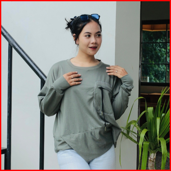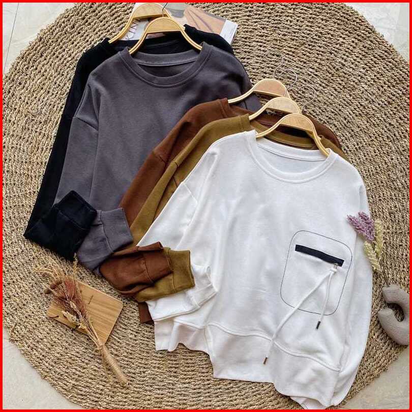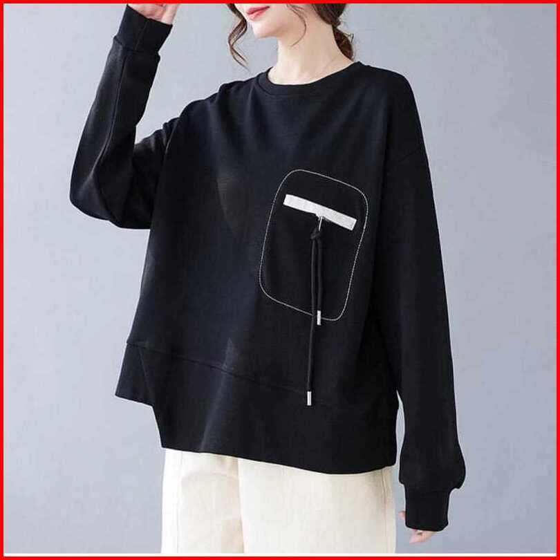 Sweatshirt Oversize Wanita Pocket Zipper Kaos Lengan Panjang Style Korean Terbaru