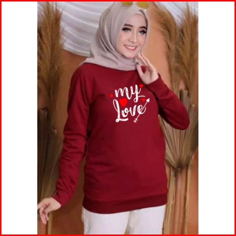 Kaos Lengan Panjang My Love Kaos Sweatshirt Atasan Wanita Atasan Wanita Lengan Panjang
