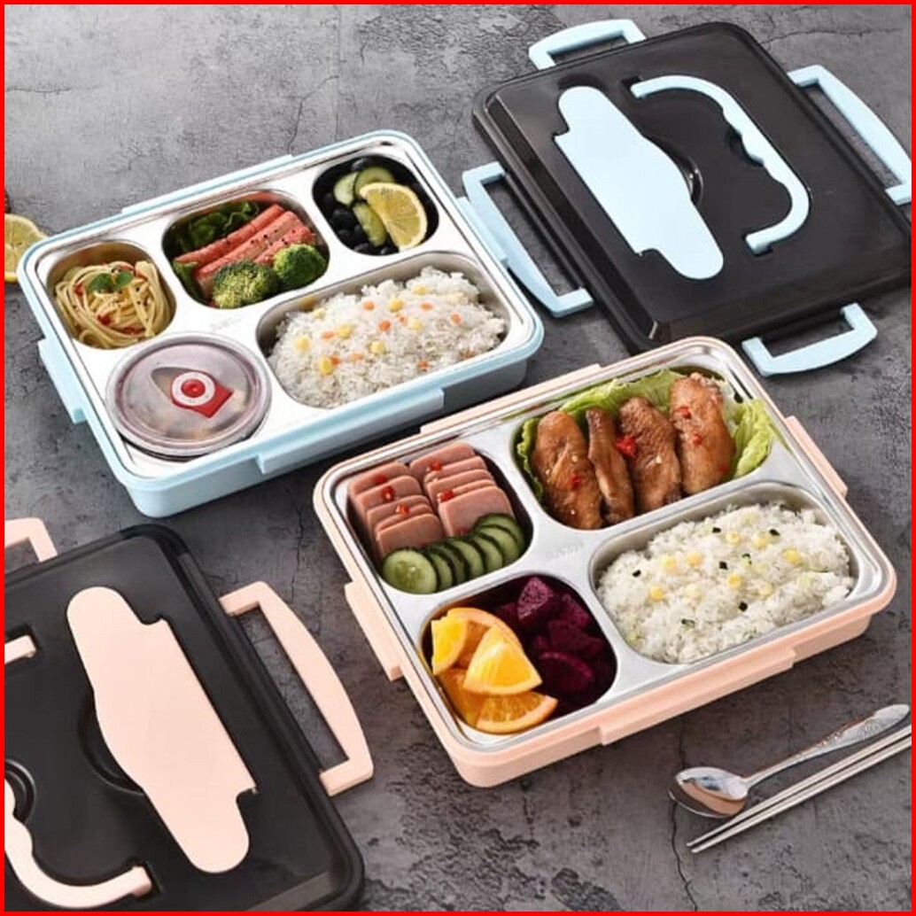 Lunch Box Stainless Steel 304 Free Tas Kotak Makan Bento Stainless Dengan Tutup Karet Yang Tahan Panas Dan Anti Tumpah F