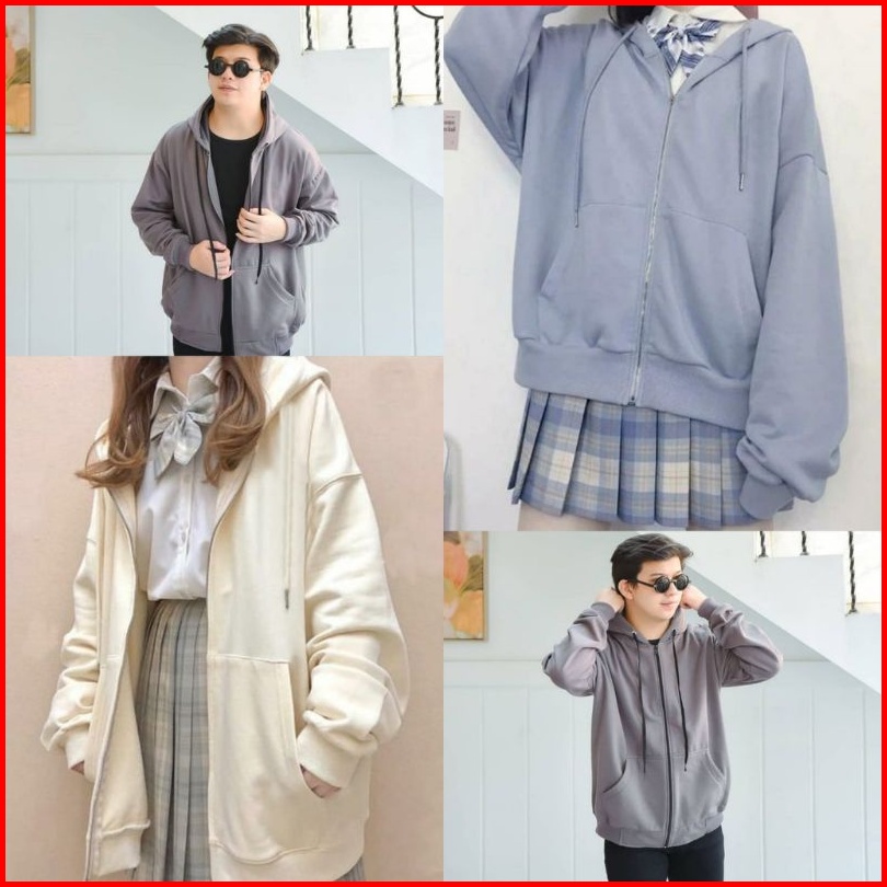 All Size Fit Xxl - Zipper Hoodie Polos Unisex - Sweater Zipper Pria Wanita Oversize