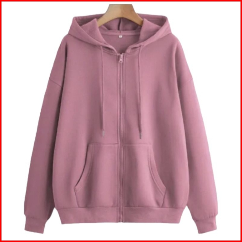Hoodie Zipper Burgundy Unisex Pria Wanita L - Xl - Xxl