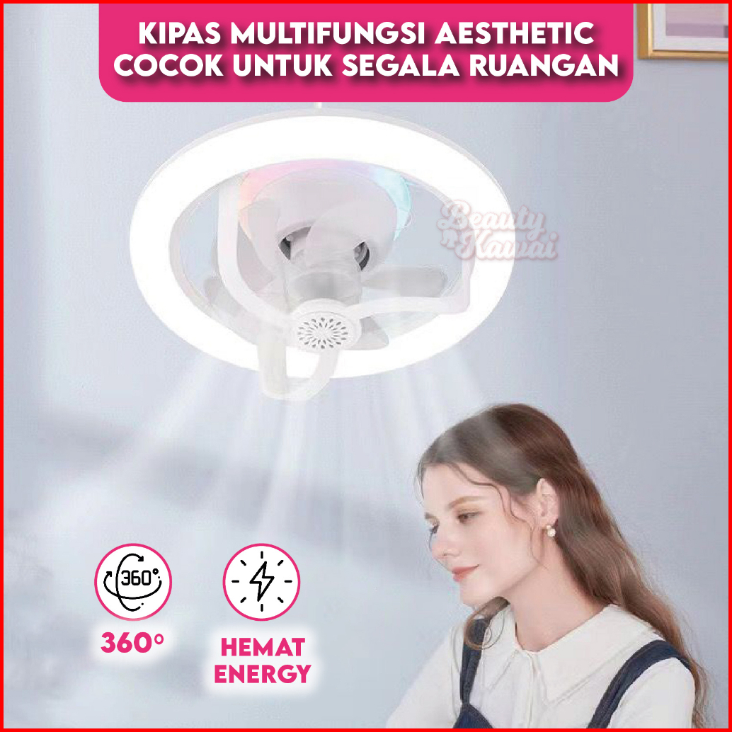 Wewant Kipas Angin Lampu Gantung Plafon Led Aromatheraphy 360 Rotation 3 Warna Led Remote Minimalis Rgb