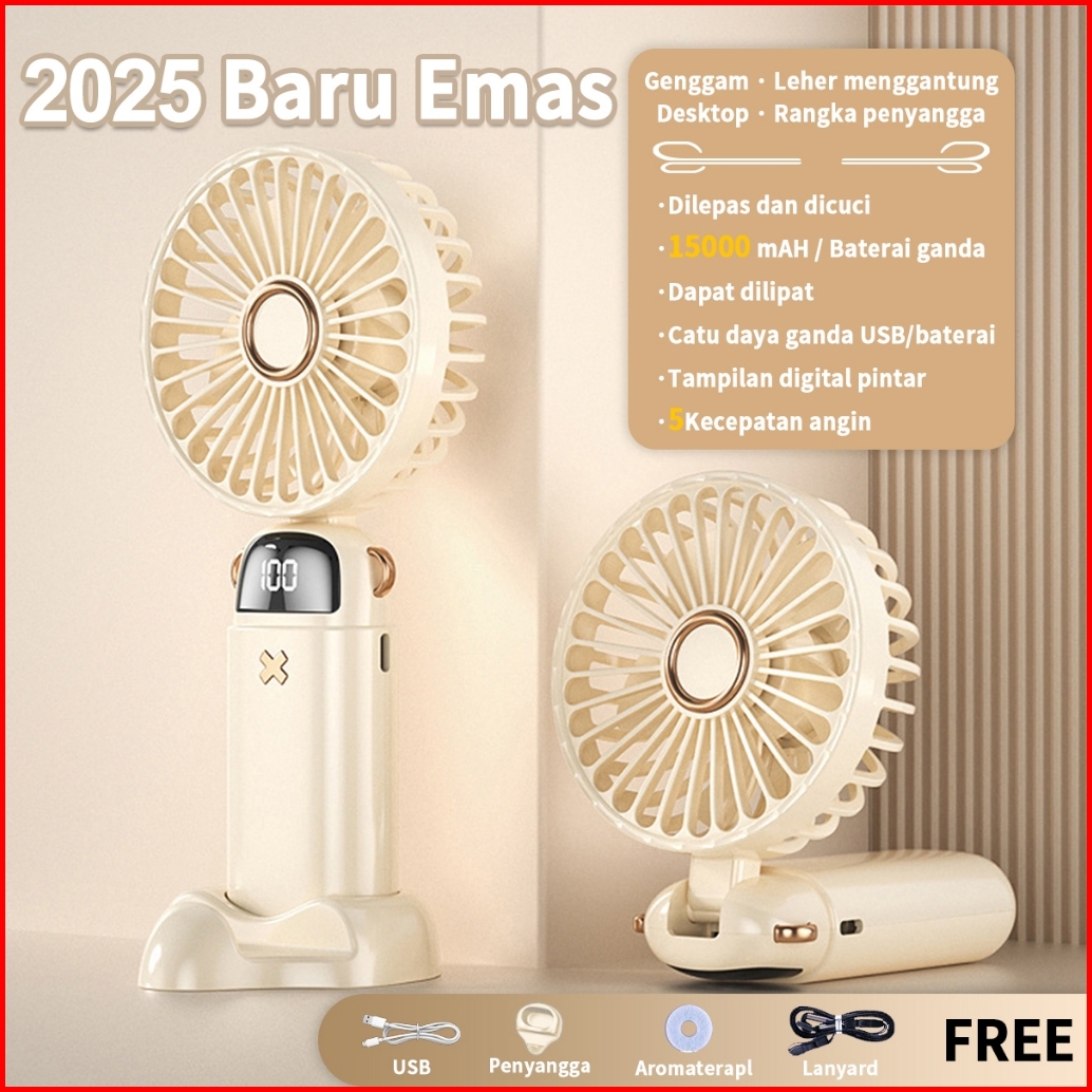 Kipas Angin Mini Portable Usb 15000 Mah Kipas Lipat 5-speed Wind Led Display
