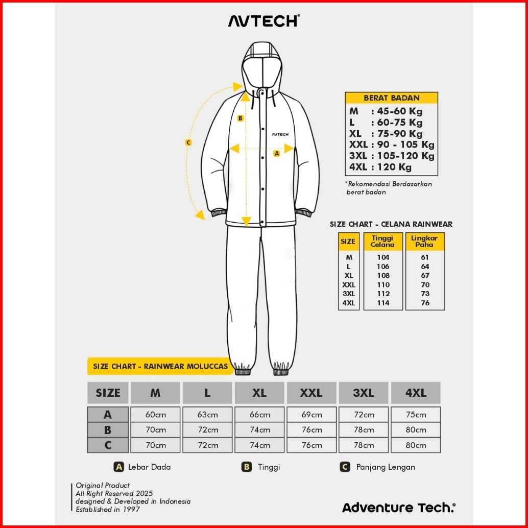 Avtech - Jas Hujan Pria Wanita Raincoat Rainwear Mantel Outdoor Motor Waterproof Build Up - Moluccas