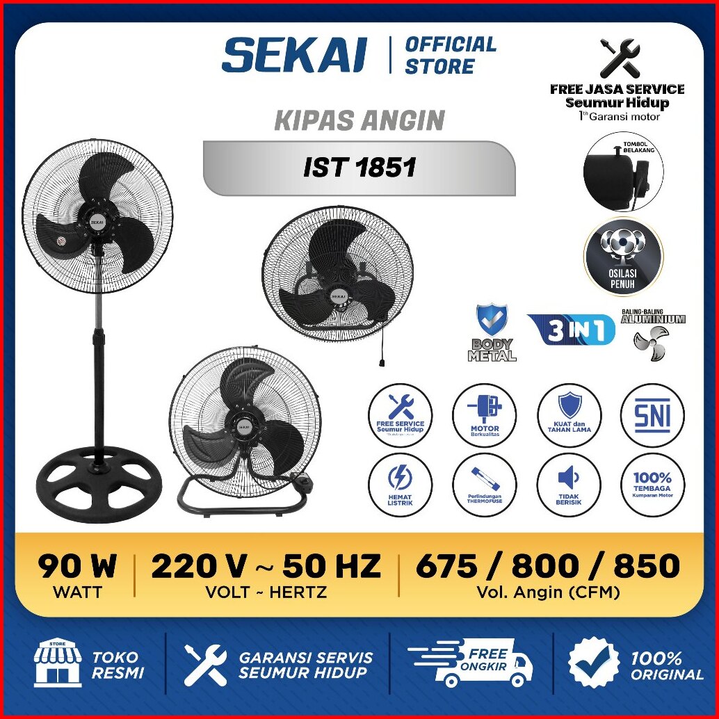 Sekai Kipas Angin Berdiri Kipas Angin Dinding Kipas Angin Meja 3 In 1 18 Inch - Ist 1851