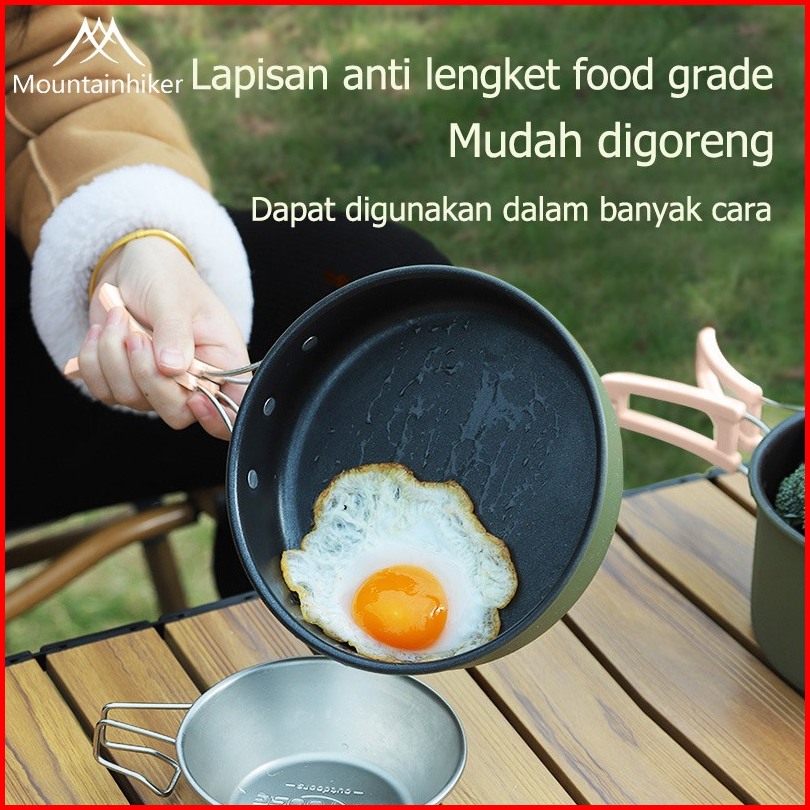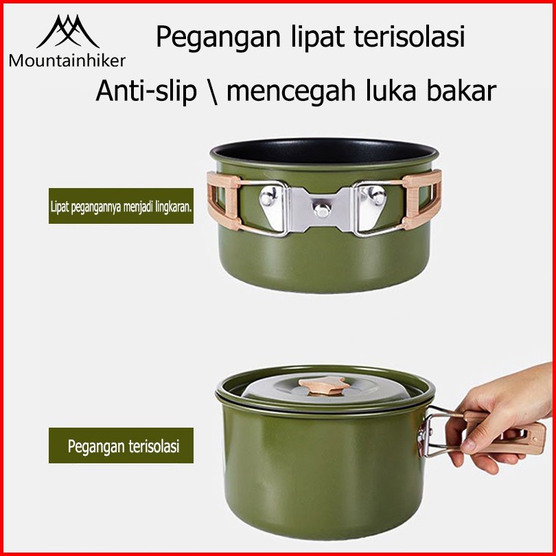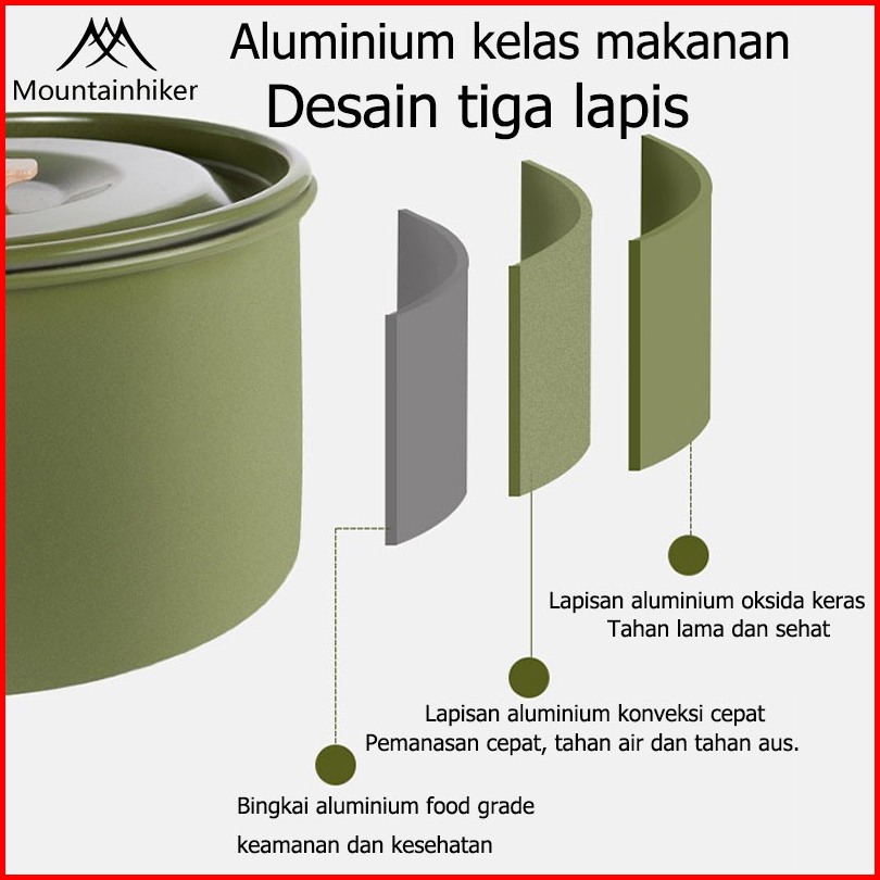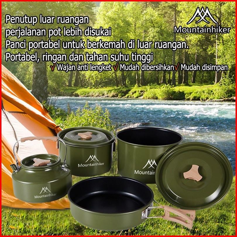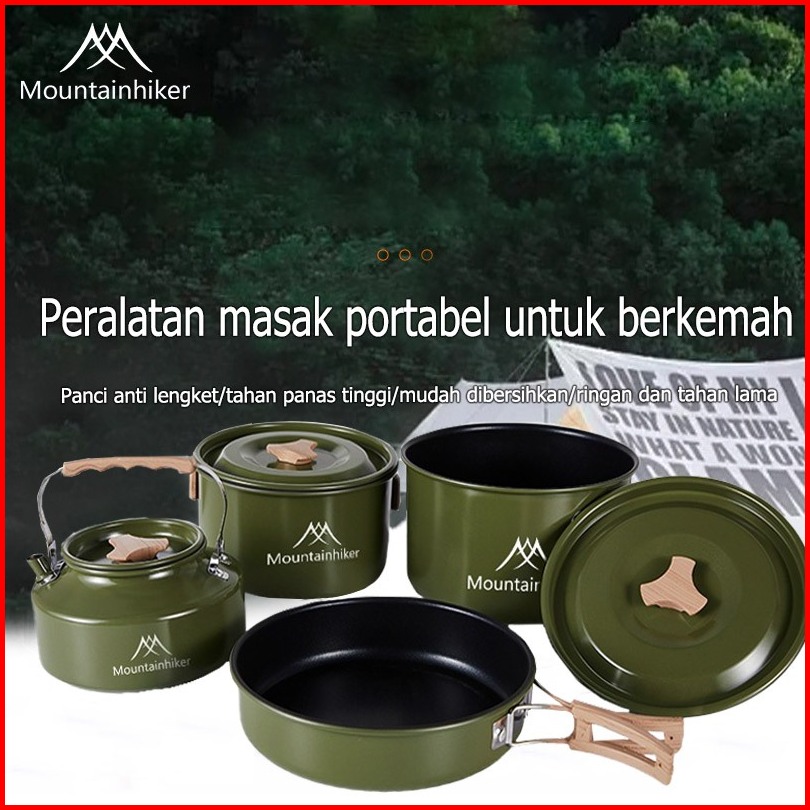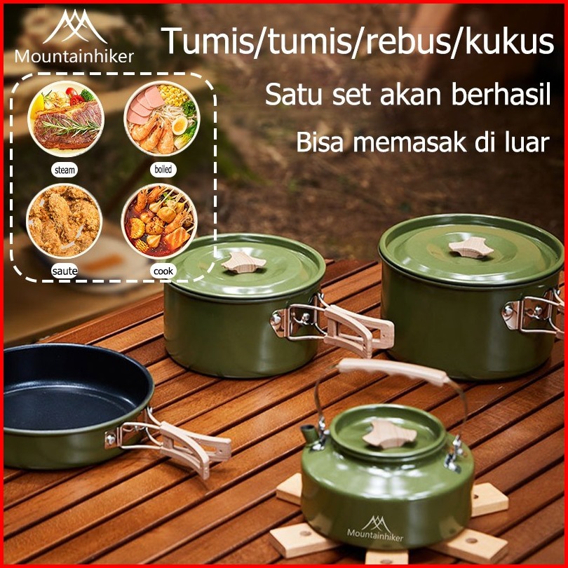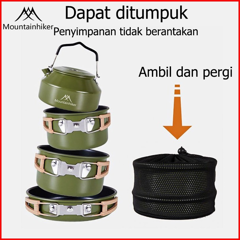 Mountainhiker 3pcs 4pcs Set Peralatan Masak Berkemah Set Memasak Panci Ketel Dengan Tas Penyimpanan Kemah Rekreasi Paket
