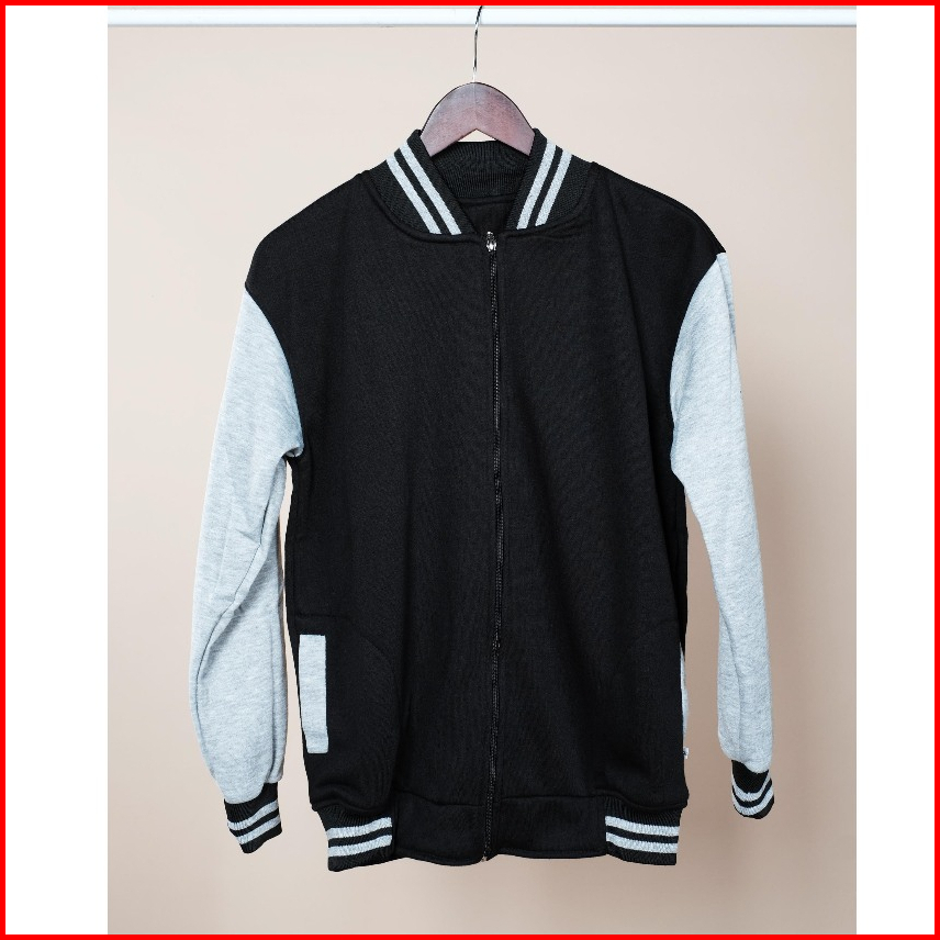 Jaket Baseball Resleting Bomber Polos Pria Wanita Casual
