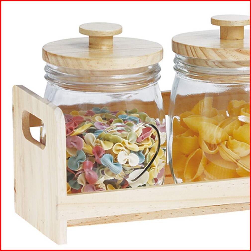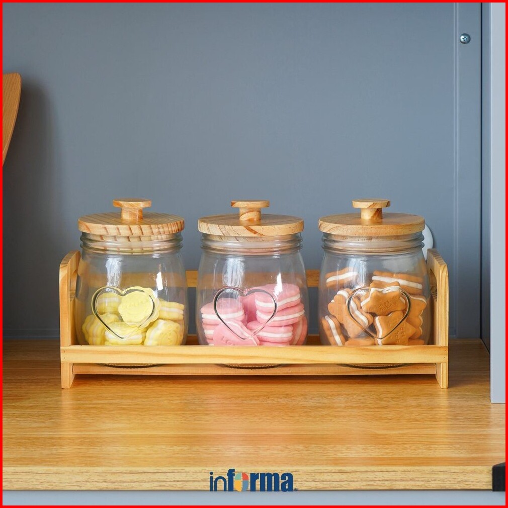 Informa 700 Ml Set 3 Pcs Coco Stoples Kaca Dengan Nampan Jar Tempat Simpan Snack Dan Permen Setoples Toples Serbaguna Pe
