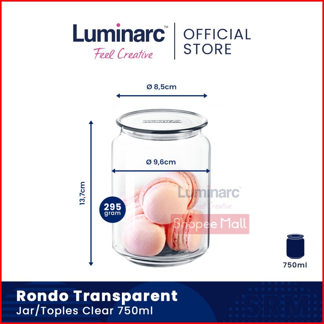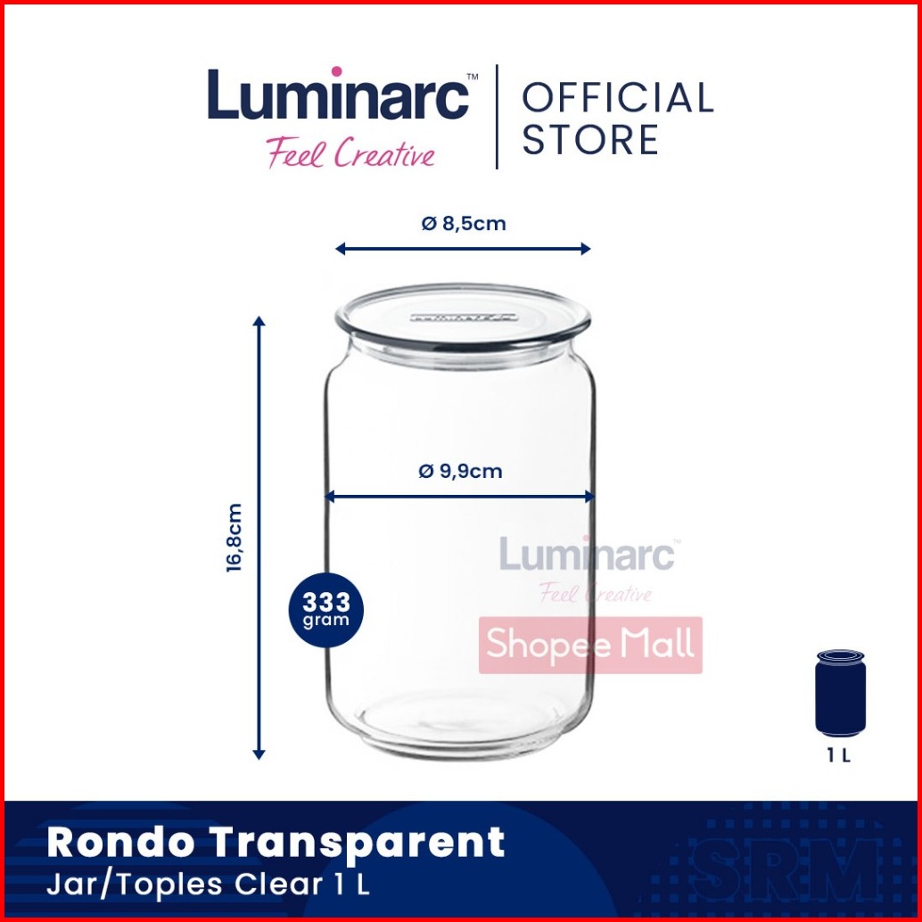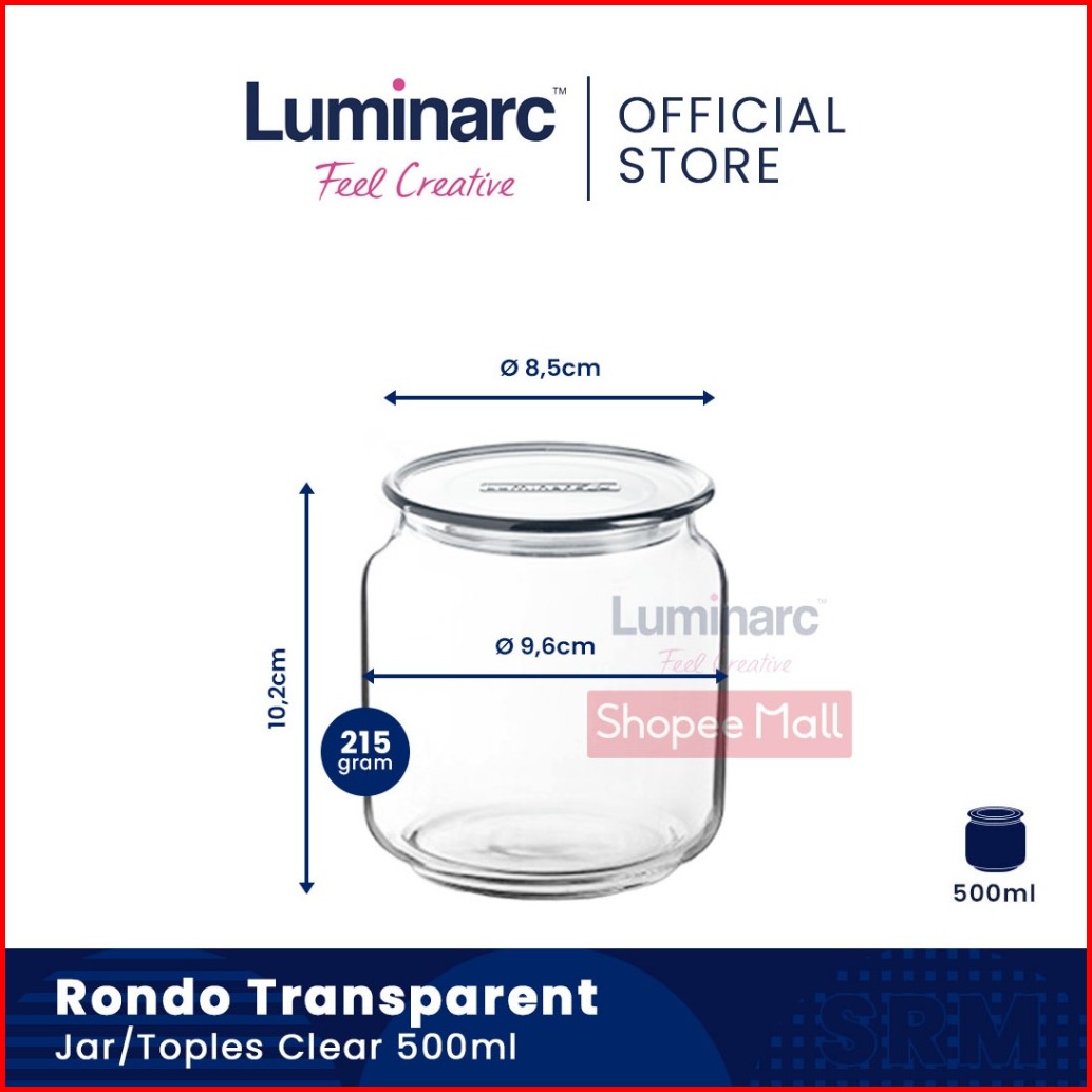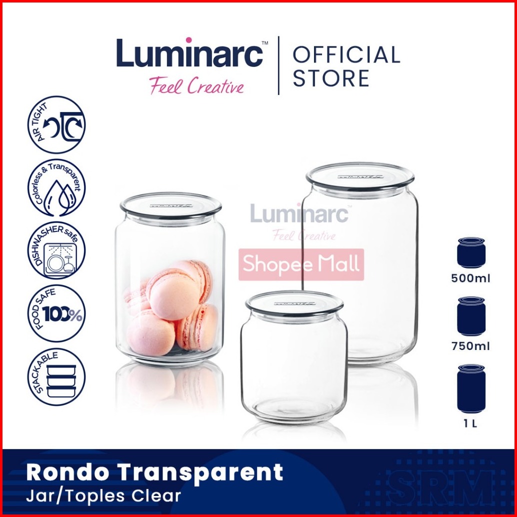 Luminarc Jar Toples Kaca Rondo Transparent Clear 500ml 750ml 1l