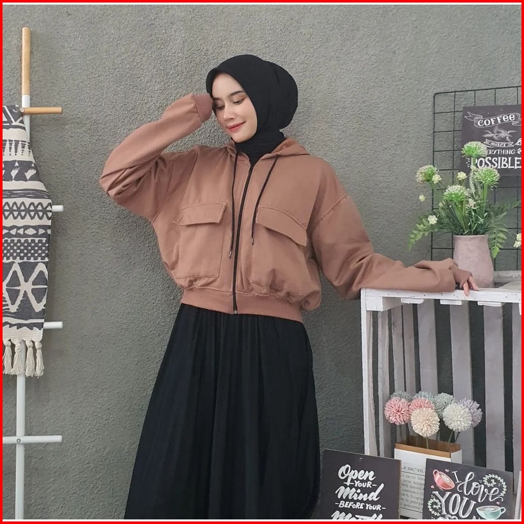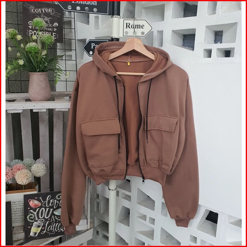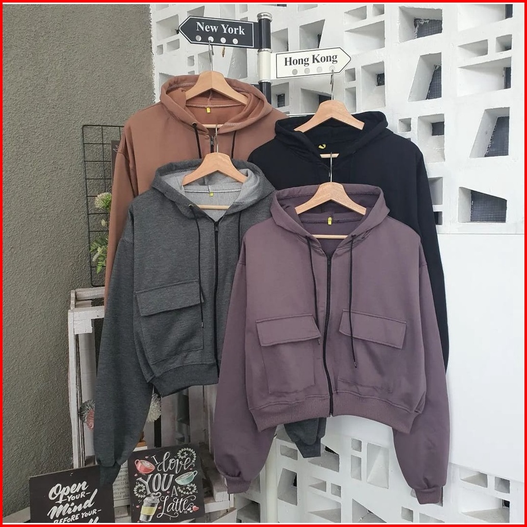 Zarra Croop Hodie Jaket Wanita - Jaket Crope Wanita Casual