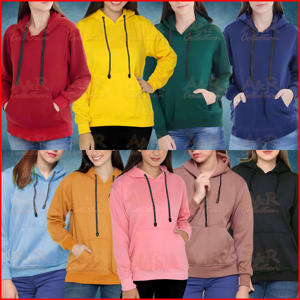 Hoodie Polos Wanita - Jaket Hoodie Jumper Polos - Bahan Fleece
