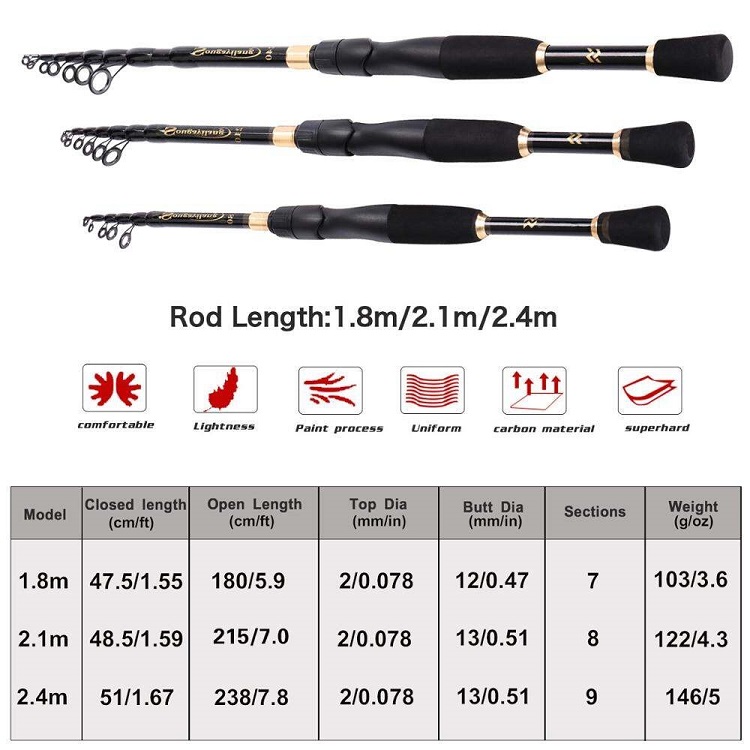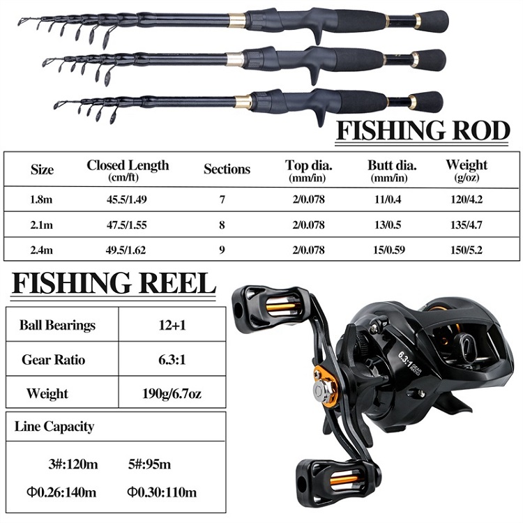 Sougayilang Setelan pancing Set 2 Sections 1.8-2.1m Spinning Fishing Rod Reel Combo Fishing Line Lure Bag Hooks Full Set