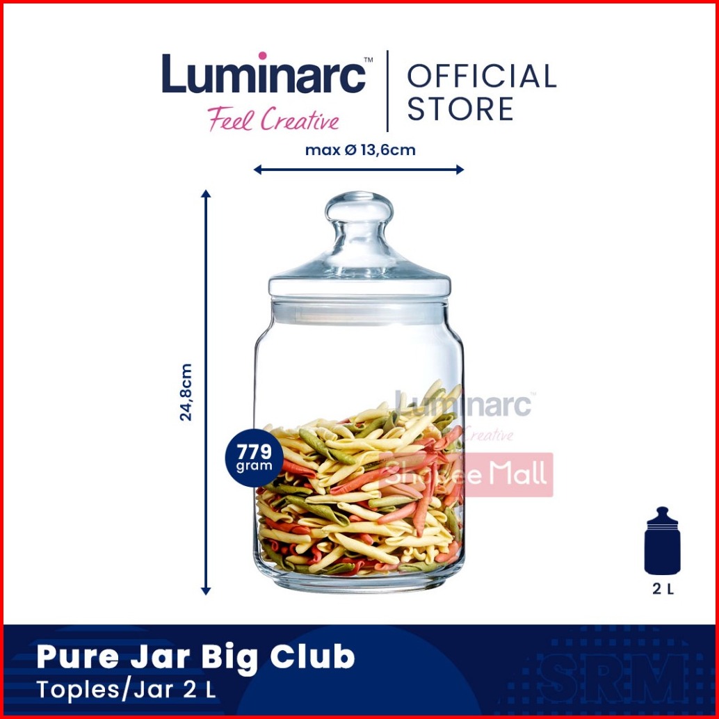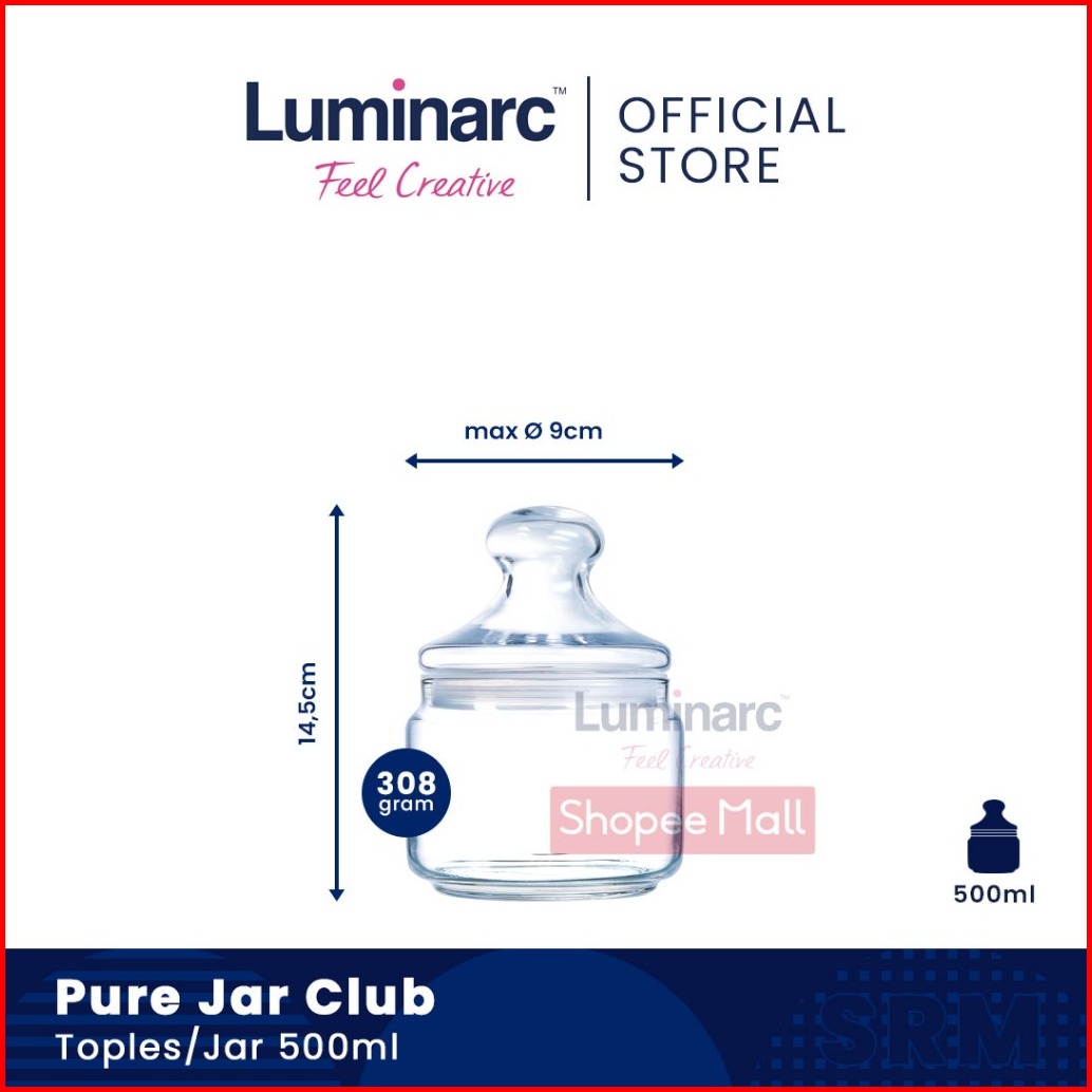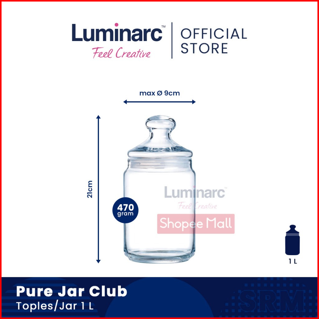 Luminarc Toples Kaca Pure Jar Club 500ml 750ml 1l 1 5l 2l