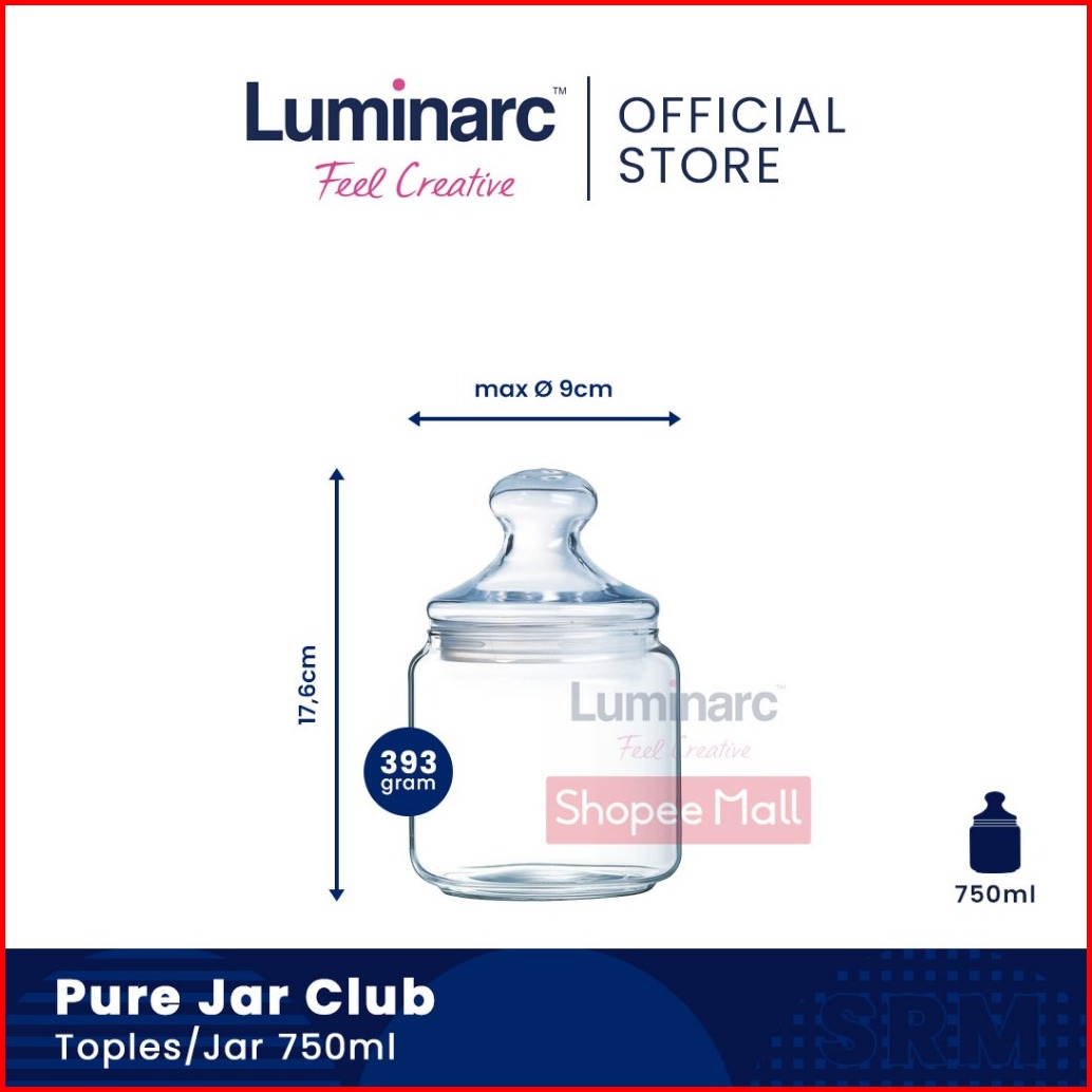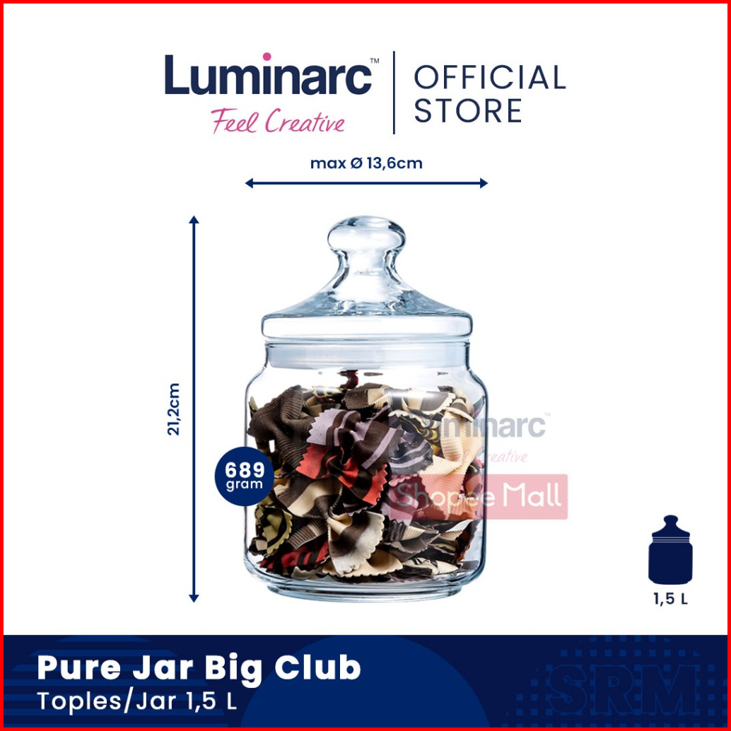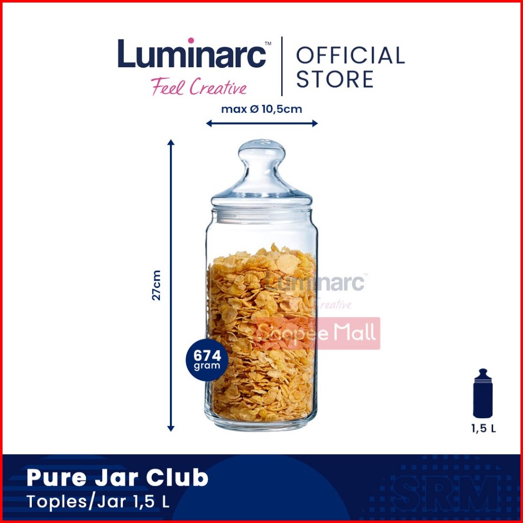 Luminarc Toples Kaca Pure Jar Club 500ml 750ml 1l 1 5l 2l