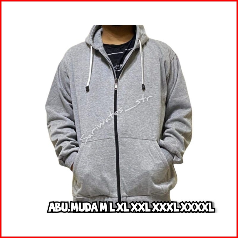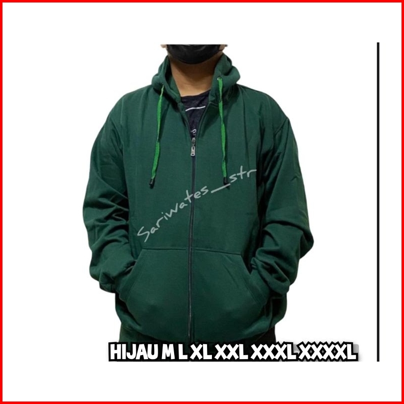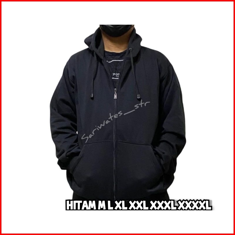 Jaket Hoodie Pria Jumbo Zipper Jaket Polos Besar Sleting Hitam Basic Oversize Xxl Xxxl Xxxxl Xxxxxl