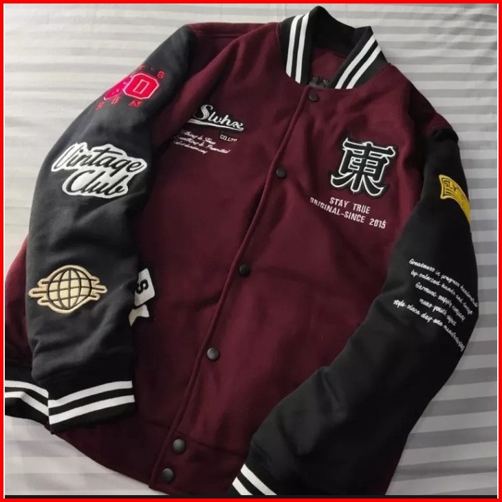 Jaket Varsity Vintage Full Bordir Jaket Baseball Varsity Pria Wanita Staytrue Kamikaze Terbaru
