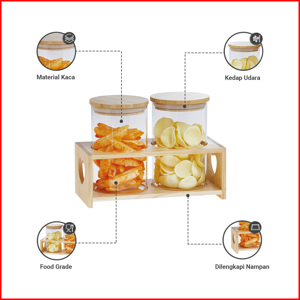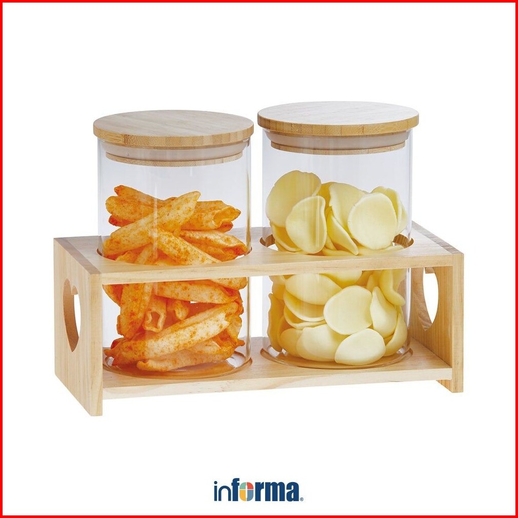 Informa 800 Ml Set 2 Pcs Coco Stoples Kaca Dengan Nampan Jar Tempat Simpan Snack Dan Permen Setoples Toples Serbaguna Pe