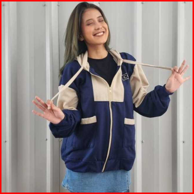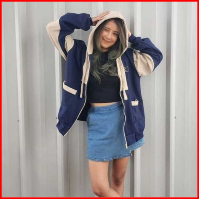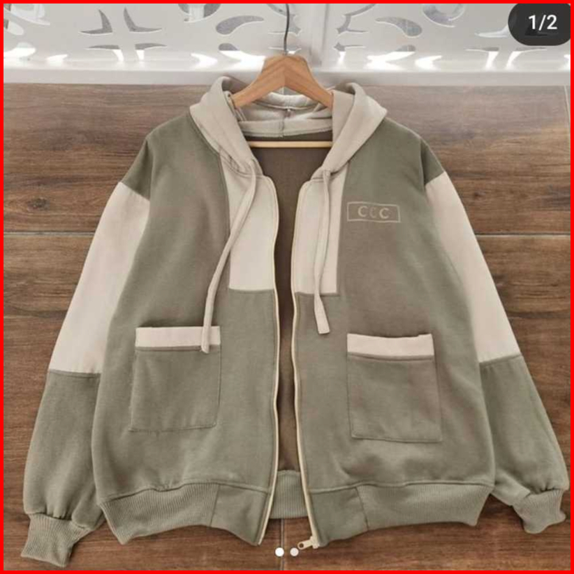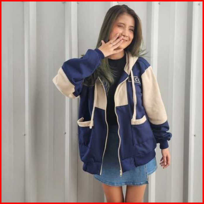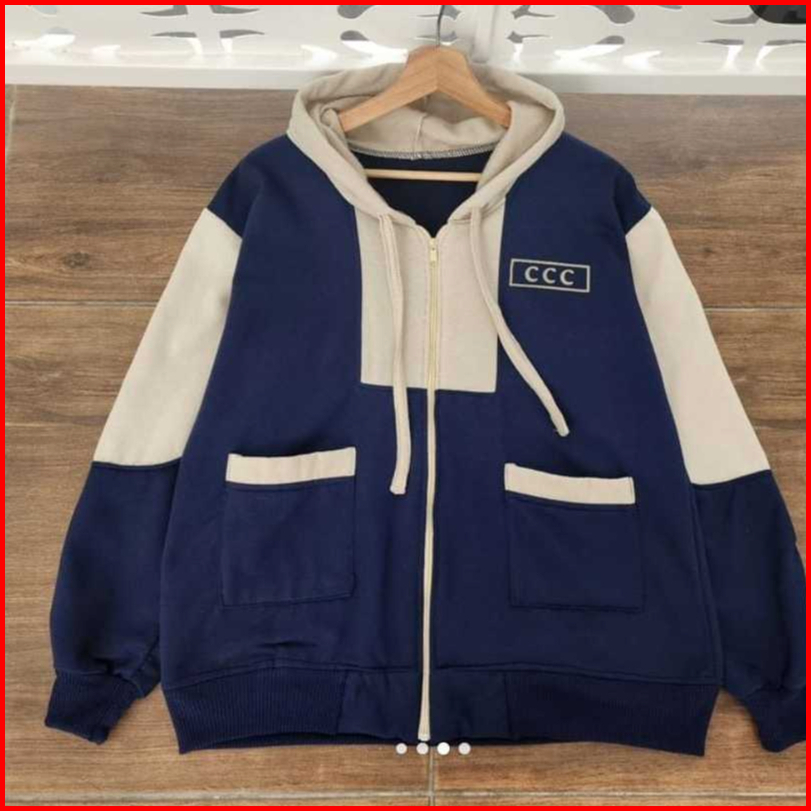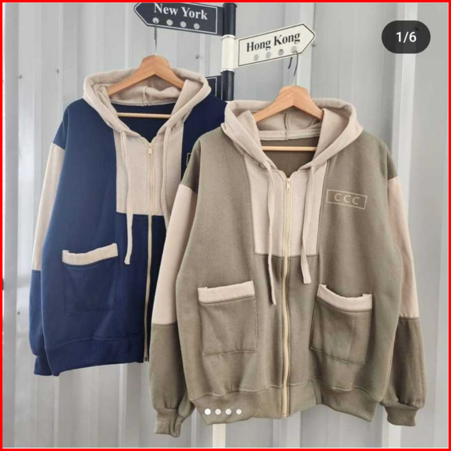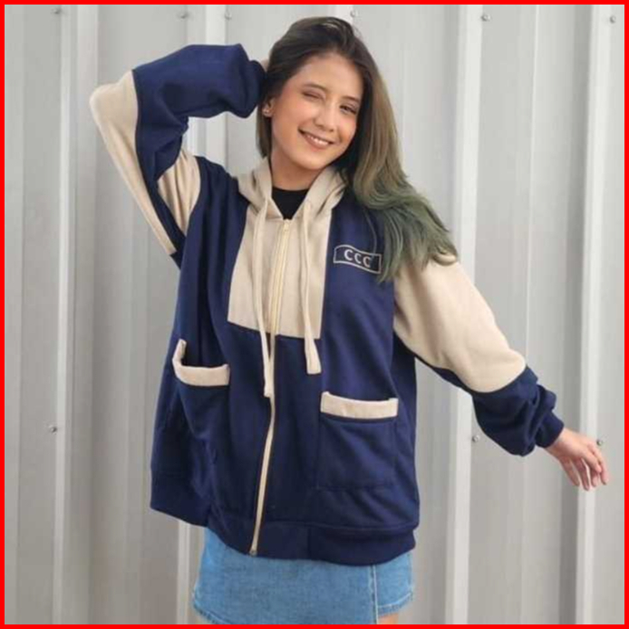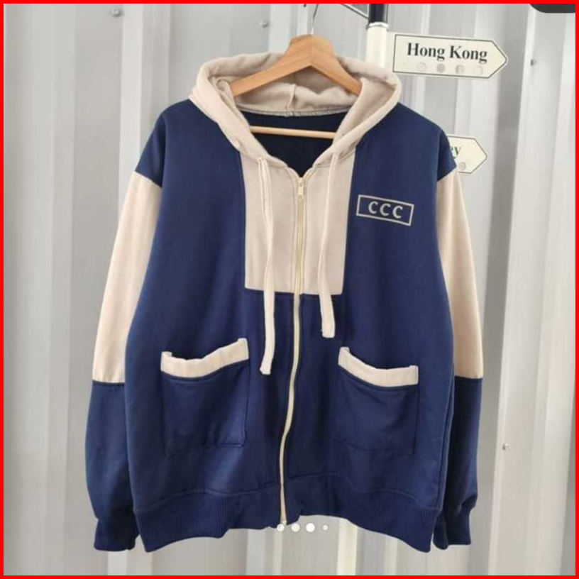 Ccc Combie Zipper Hoodie Wanita Oversize - Jaket Combinasi Wanita Korean Style