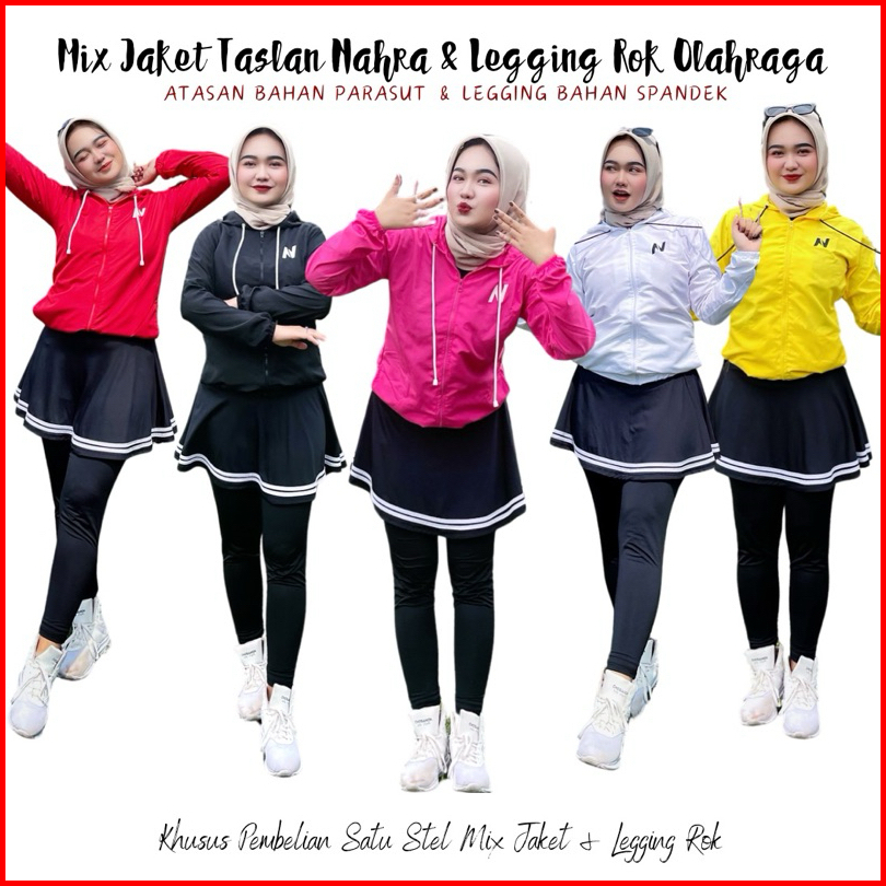 Mix Jaket Taslan Nahra Dan Legging Rok Hitam Bahan Jaket Parasut Dan Legging Rok Bahan Spandek Polyster Pembelian Khusus