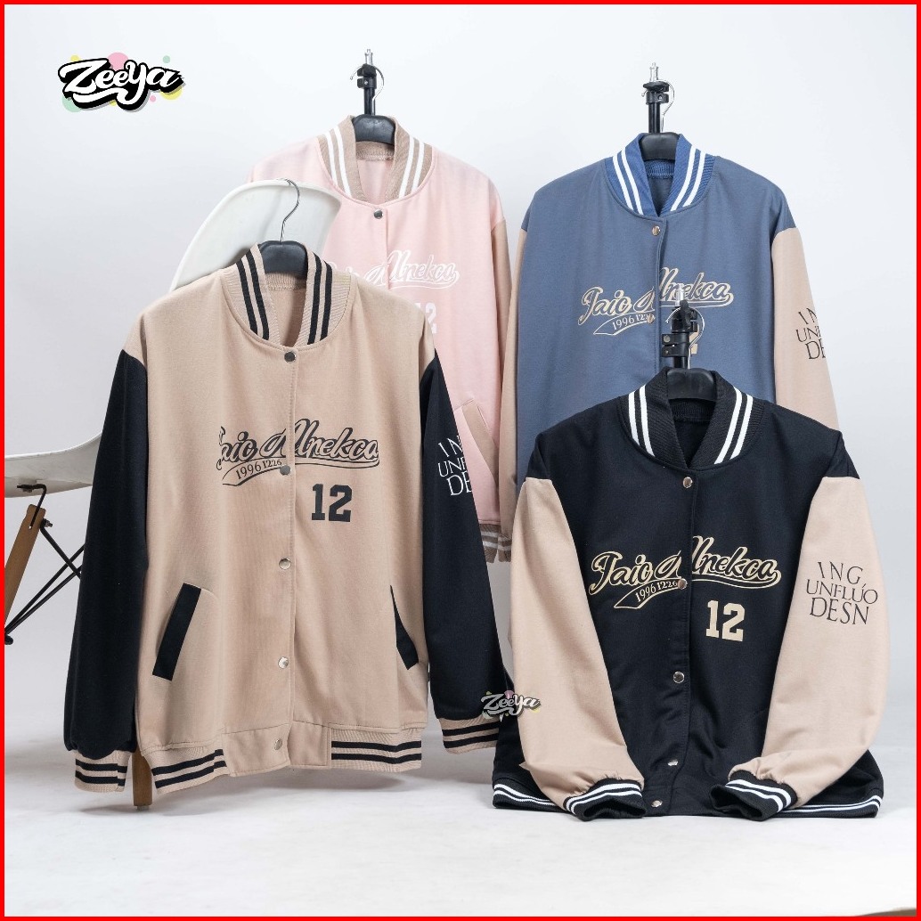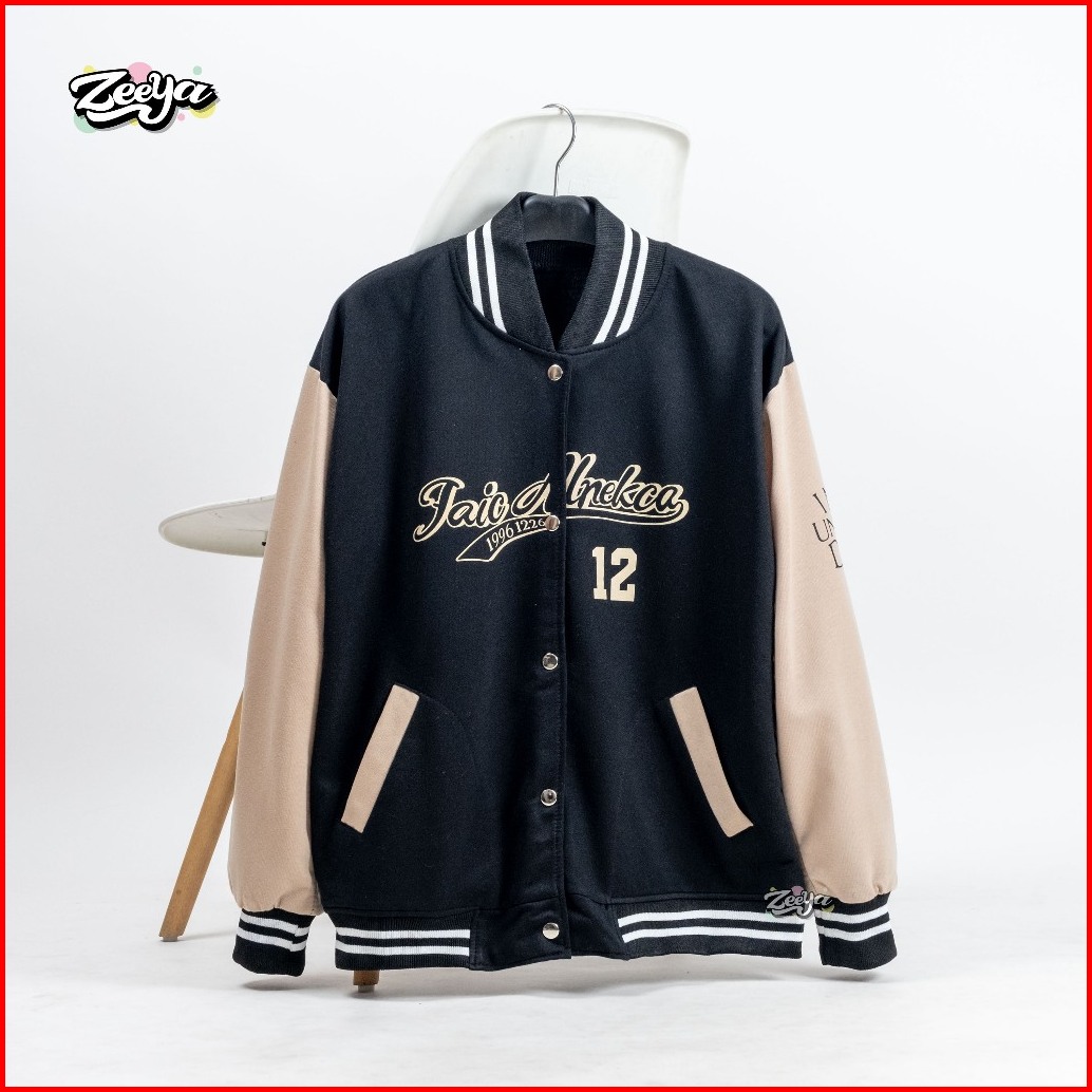 Zy - Unfluo Desn Varsity Jacket Baseball Wanita Dan Pria Lettering Style Outer Remaja Baju Dewasa