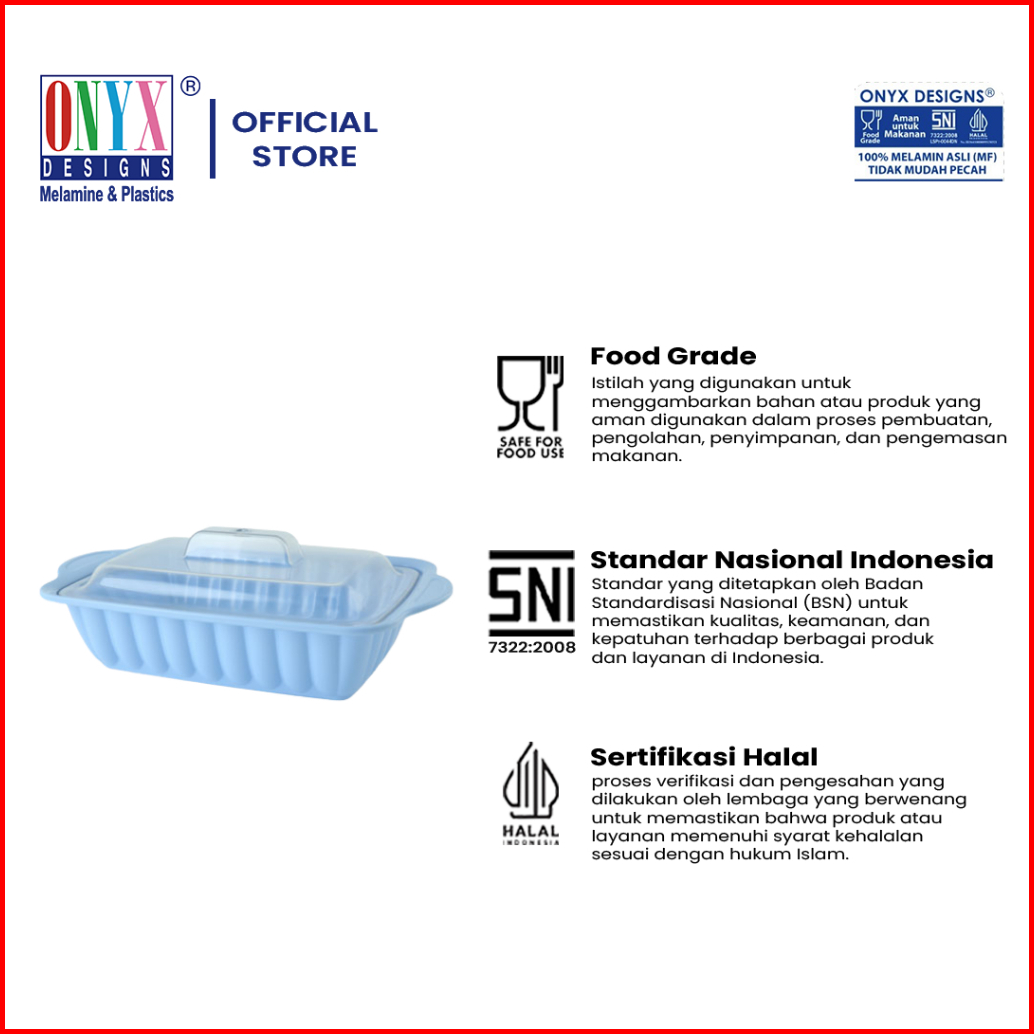 Onyx Seiv Wadah Saji Sedang 12.5 Dengan Tutup Transparan Melamin Aman Untuk Makanan 27125sb