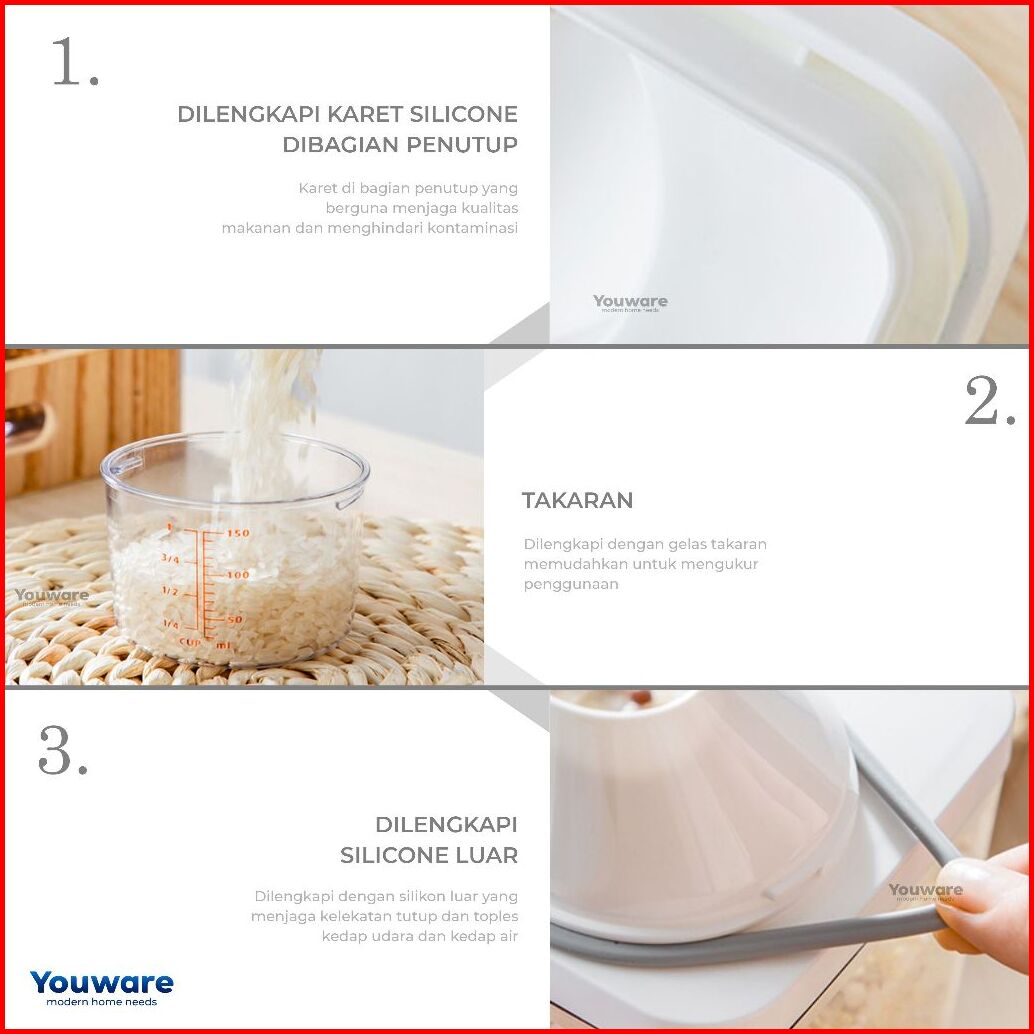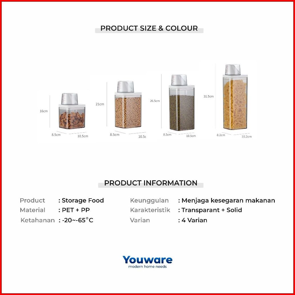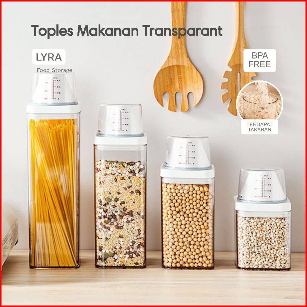 Youware - Lyra Toples Transparan Makanan Kontainer Botol Penyimpanan Cemilan Makanan Beras Sereal Kacang-kacangan Snack