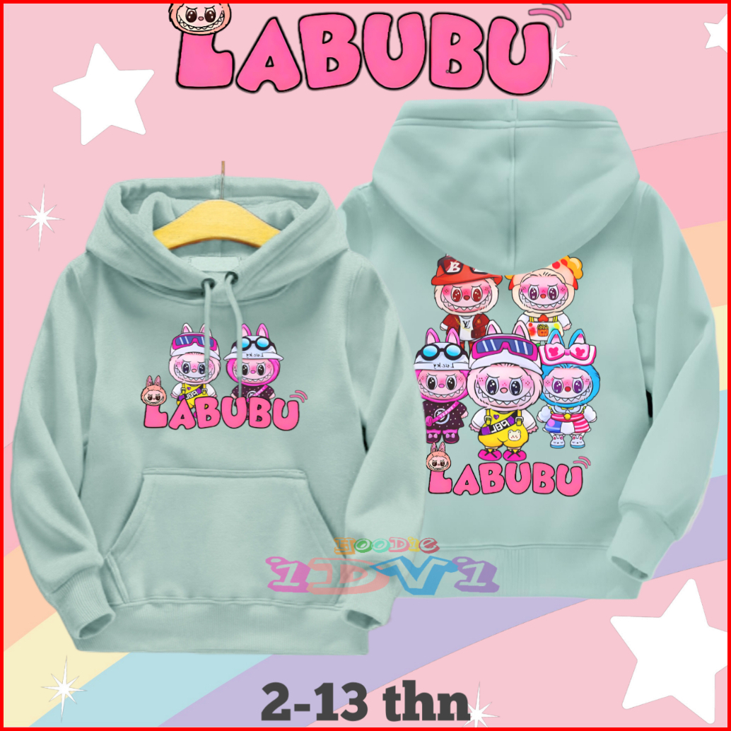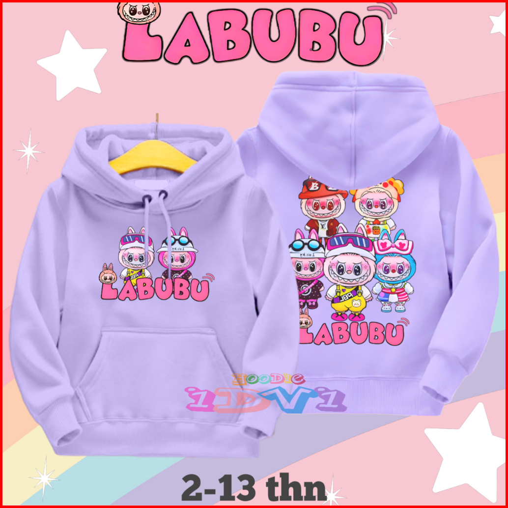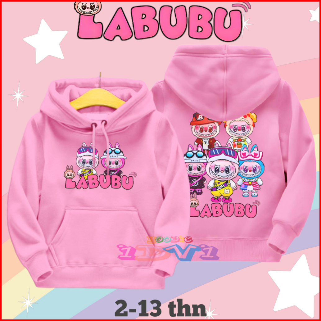 Jaket Hoodie Anak Perempuan Labubu Sweater Hoddy Anak Cewek Umur 2 3 4 5 6 7 8 9 10 11 12 13 Tahun