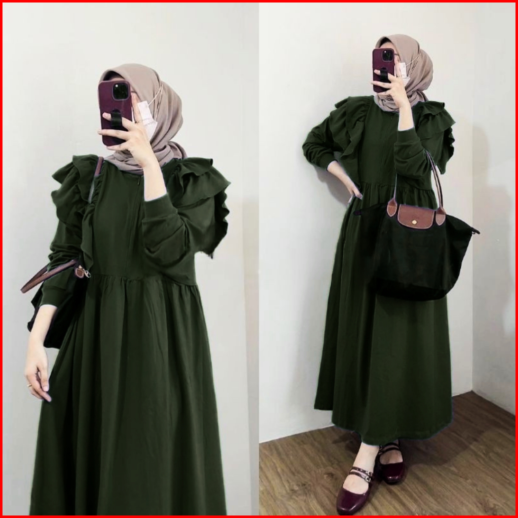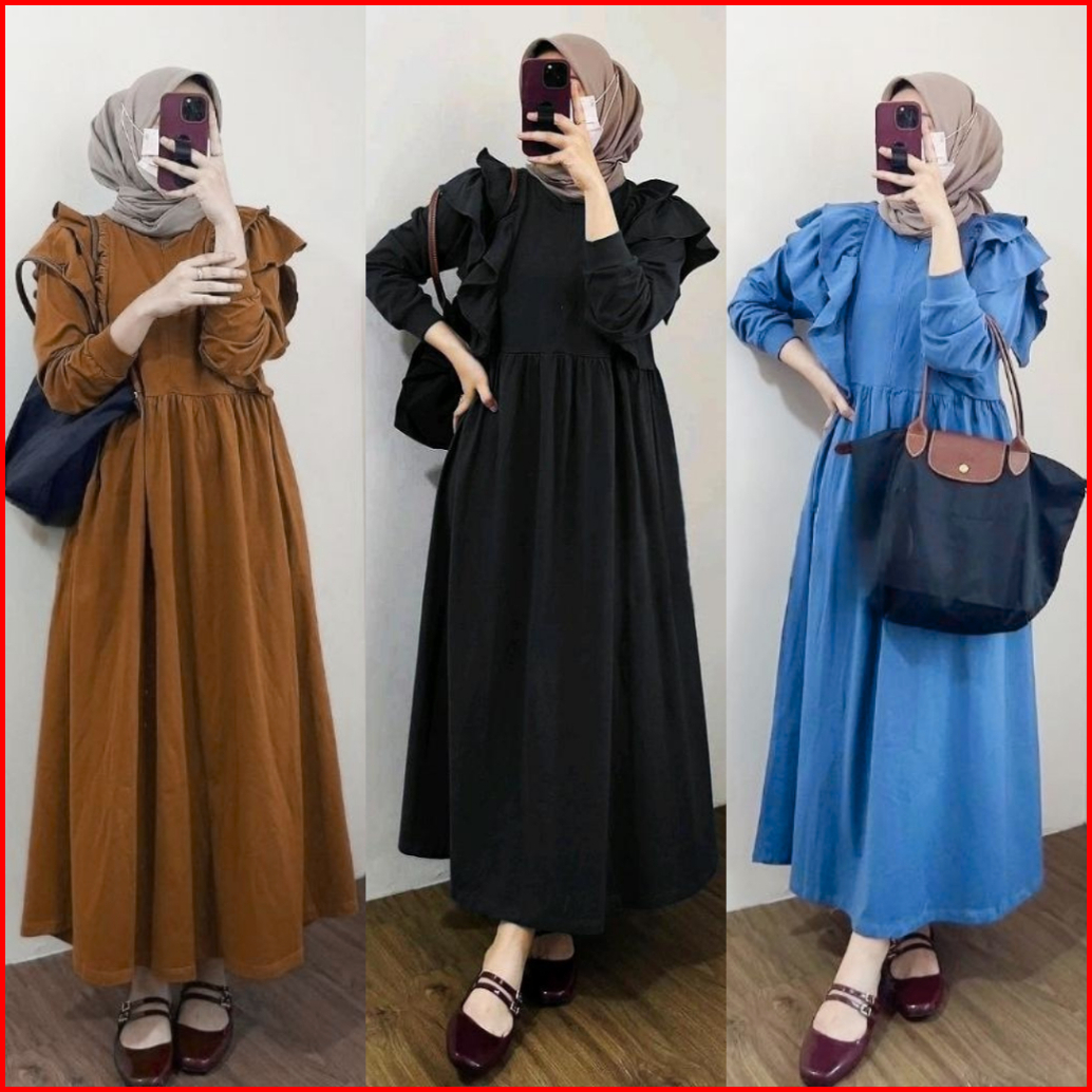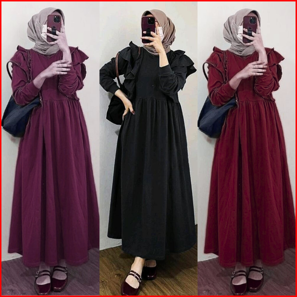 Meldy Dress Ruffle Dress Maxi Remple Wanita Gamis Crinkle Airflow Busui Friendly