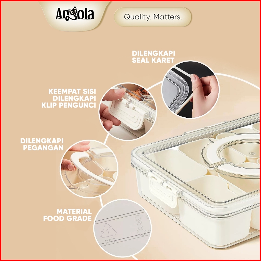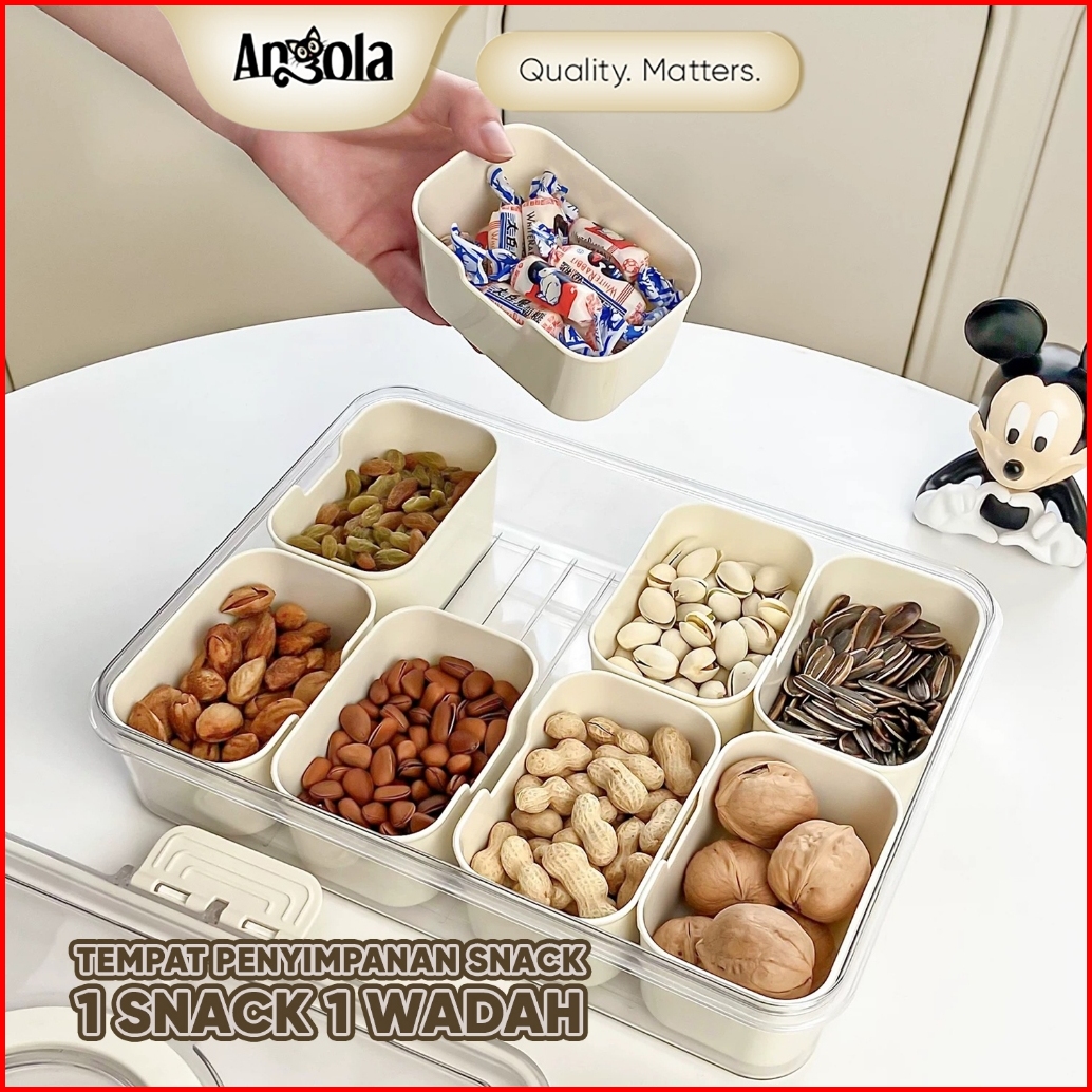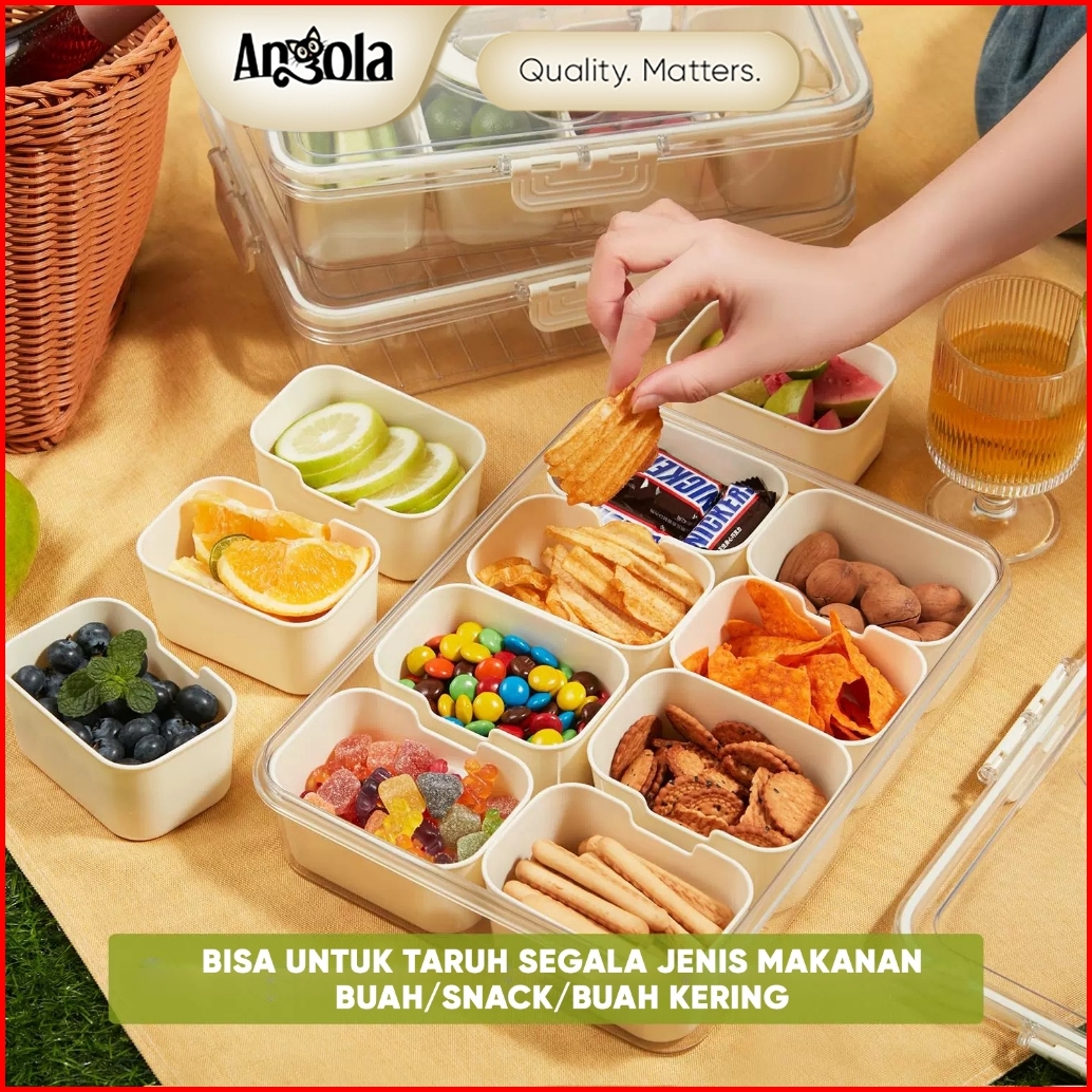 Angola Wadah Makanan Ringan 8 Slot Transparan L16 Tempat Penyimpanan Snack Anti Alot Food Storage