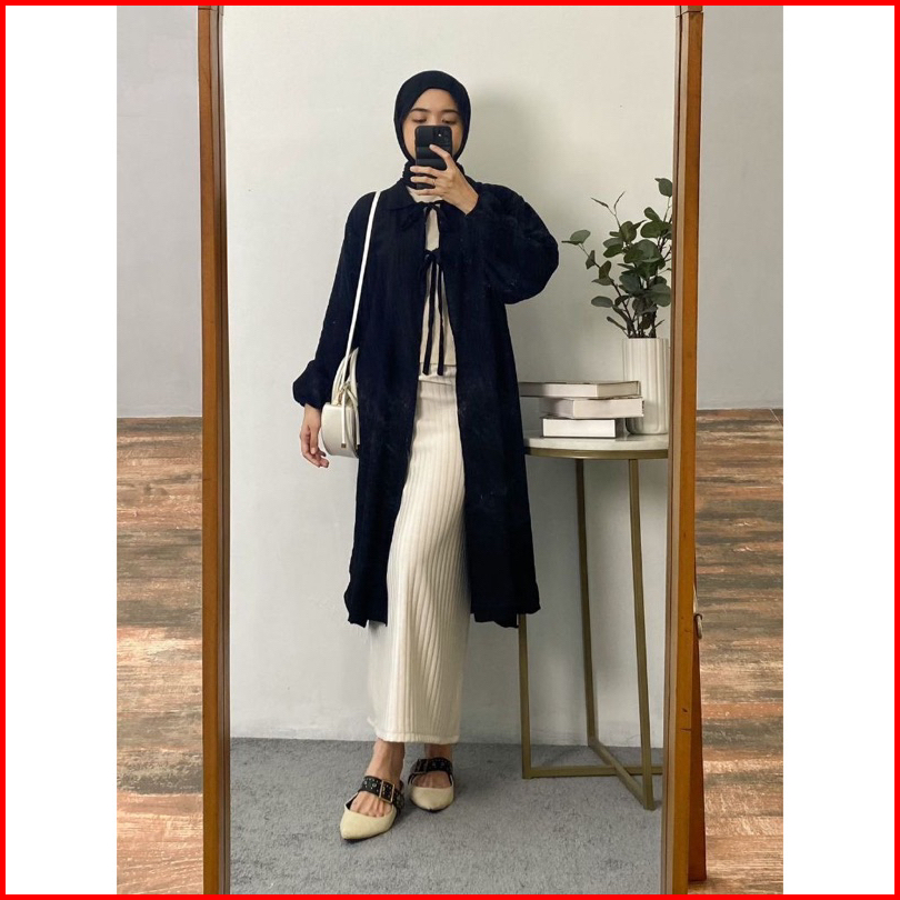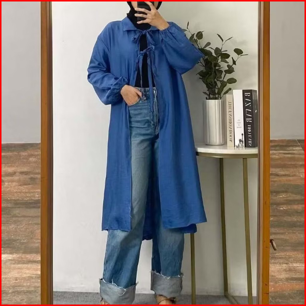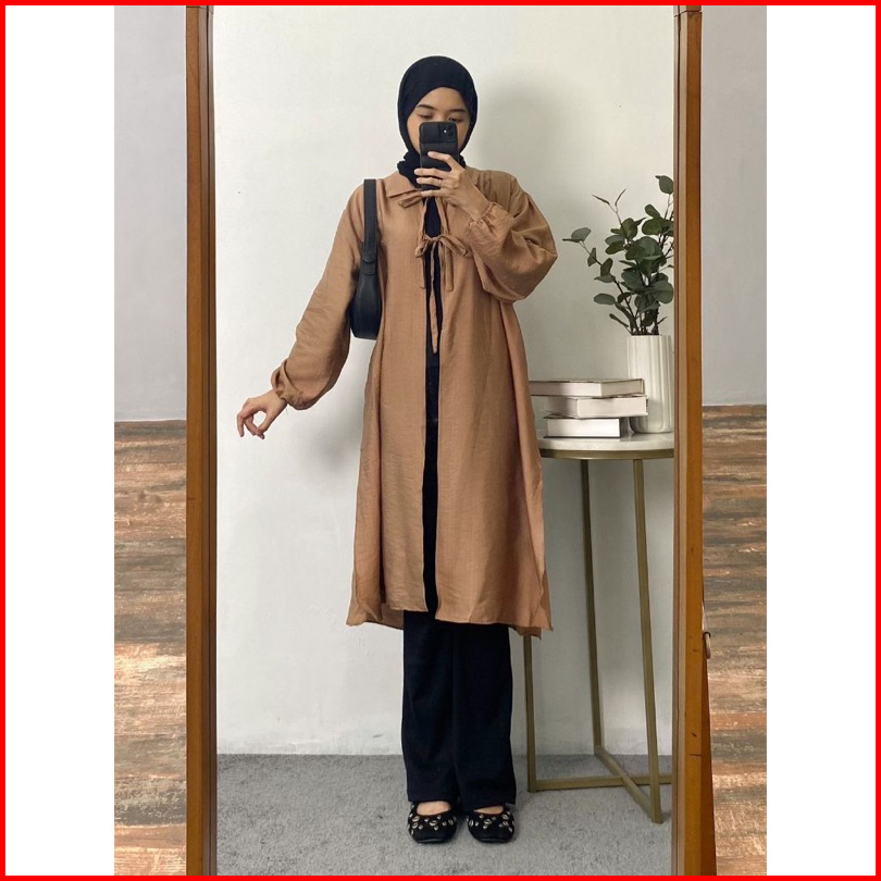 Long Outer Polos Crinkle Tali Depan Tunik Korean Style Nala Outer Tunik Crinkle Premium