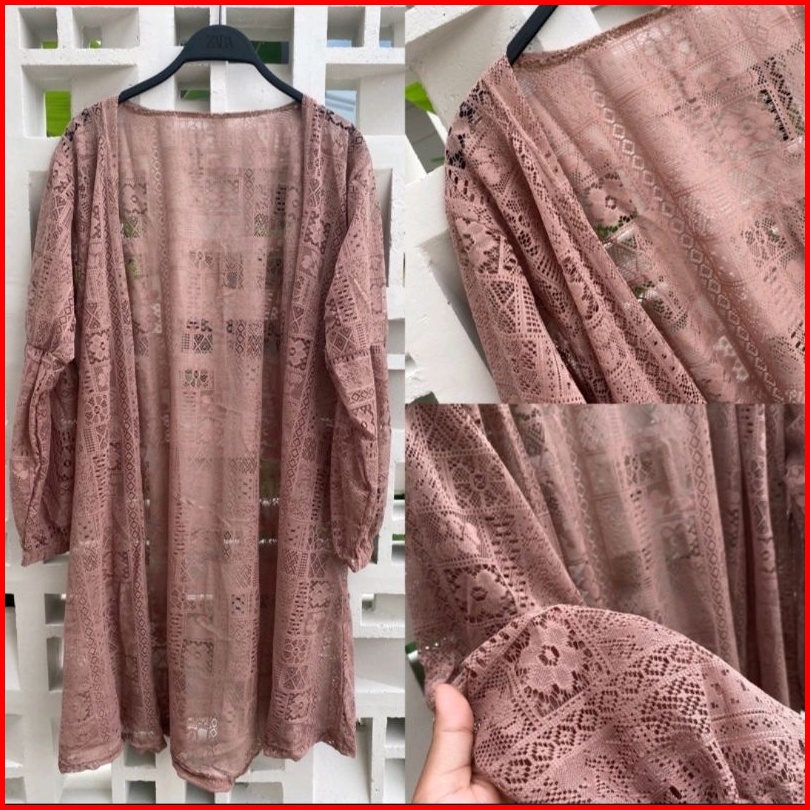Cardigan Brukat Lengan Balon Cardigan Atasan Wanita Brukat Longcardi Outer Wanita