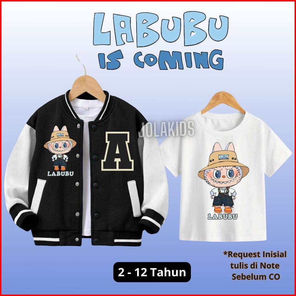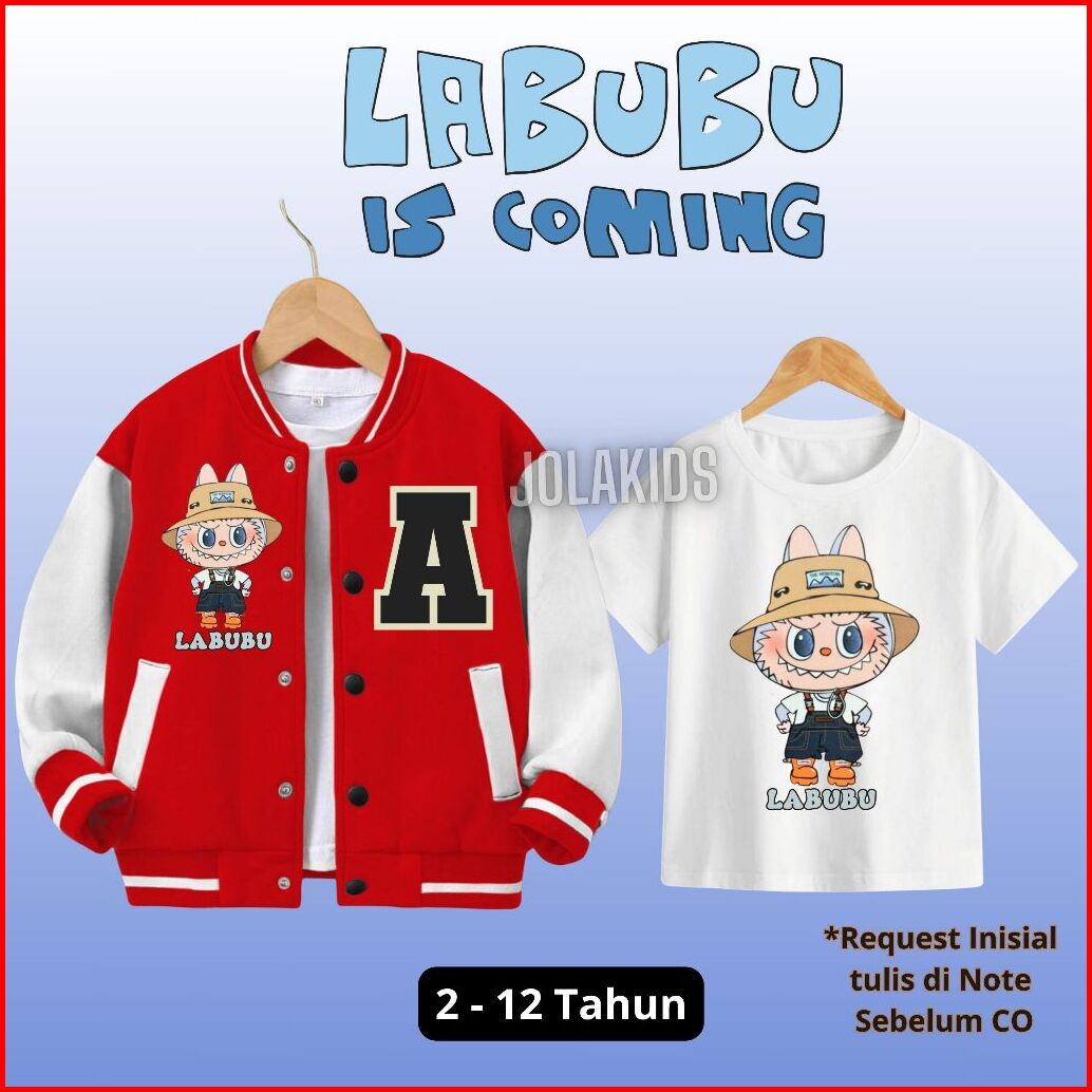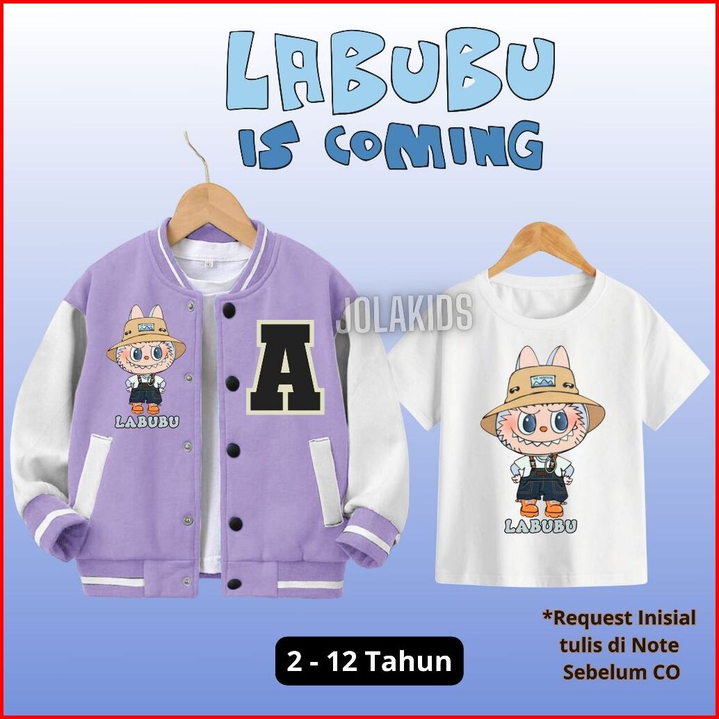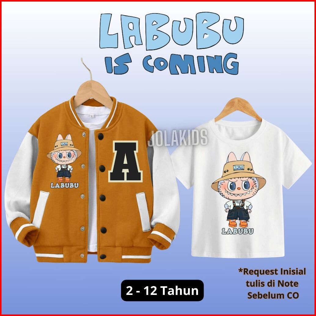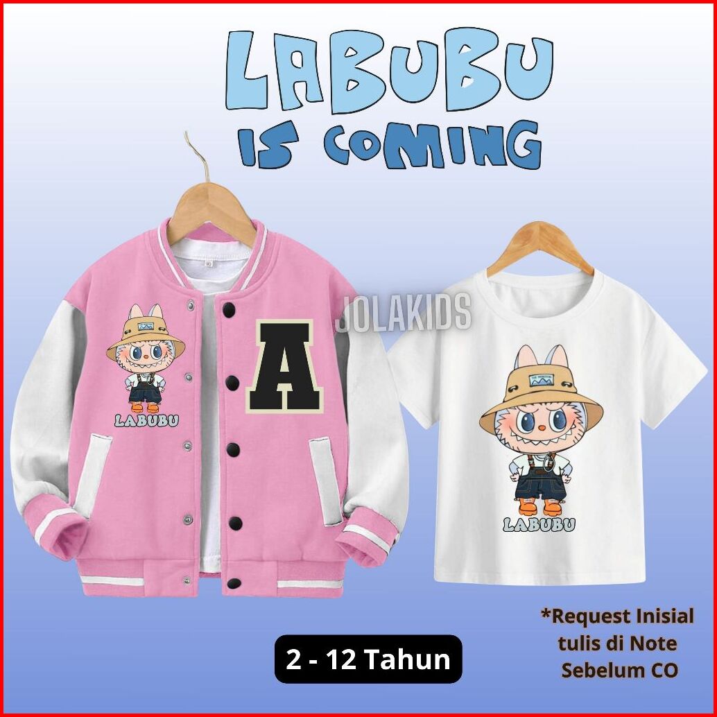 Jaket Varsity Anak Labubu Baseball Inisial Nama Usia 2 - 12 Tahun Laki Laki Perempuan Jolakids