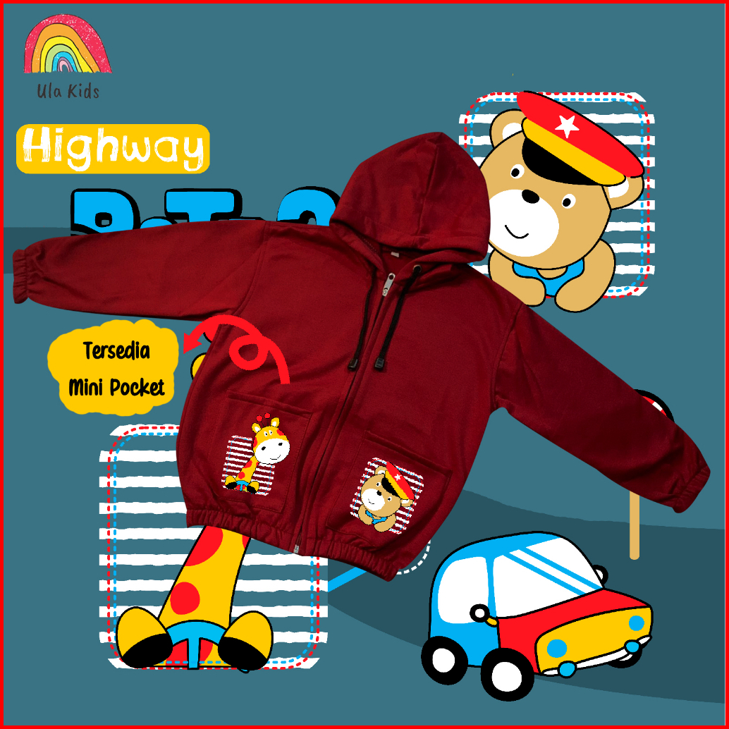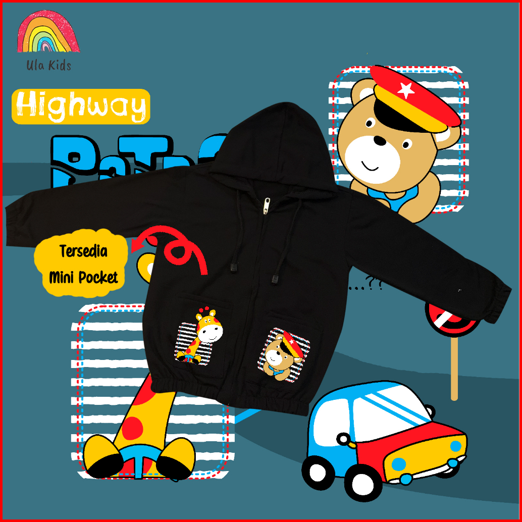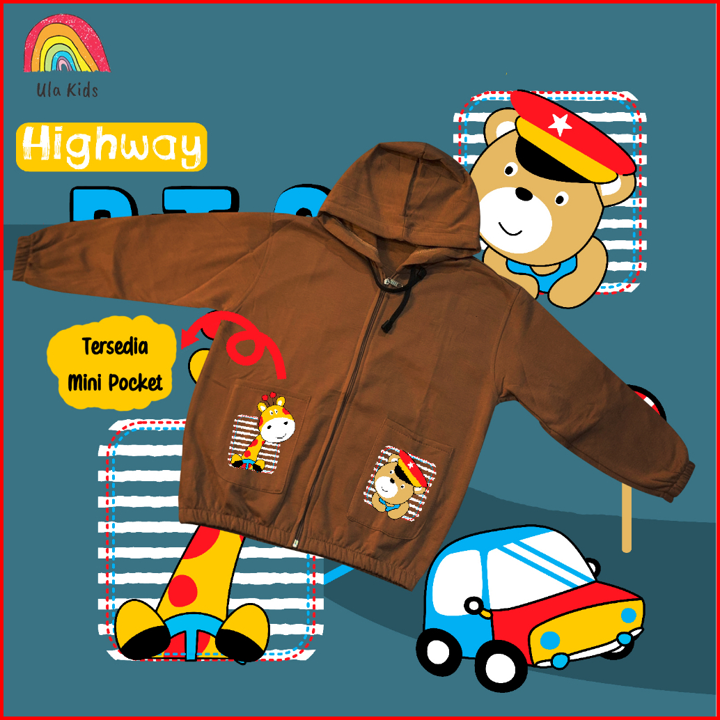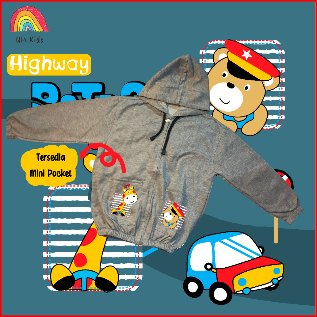 Jacket Zipper Pocket Anak Ula Kids 1 - 6 Tahun Two Animal