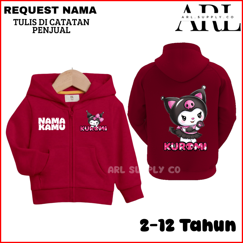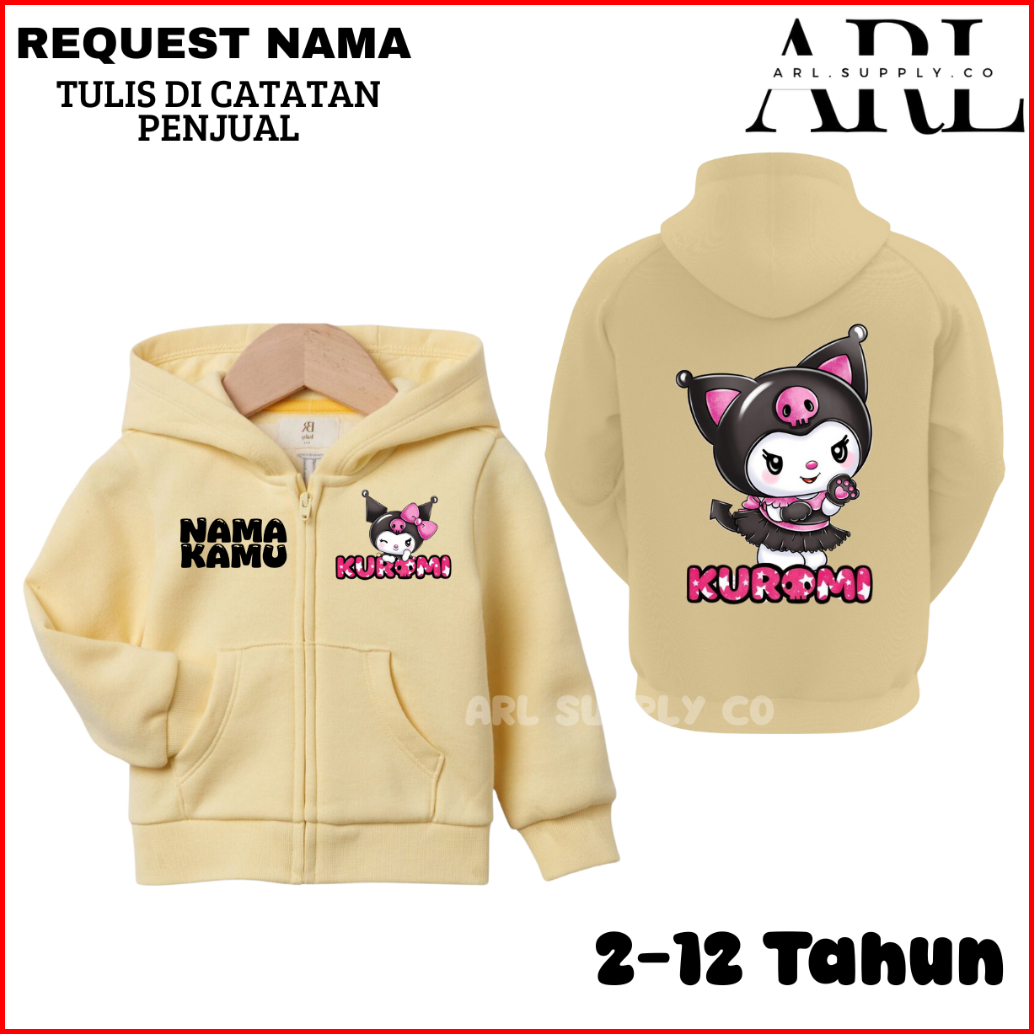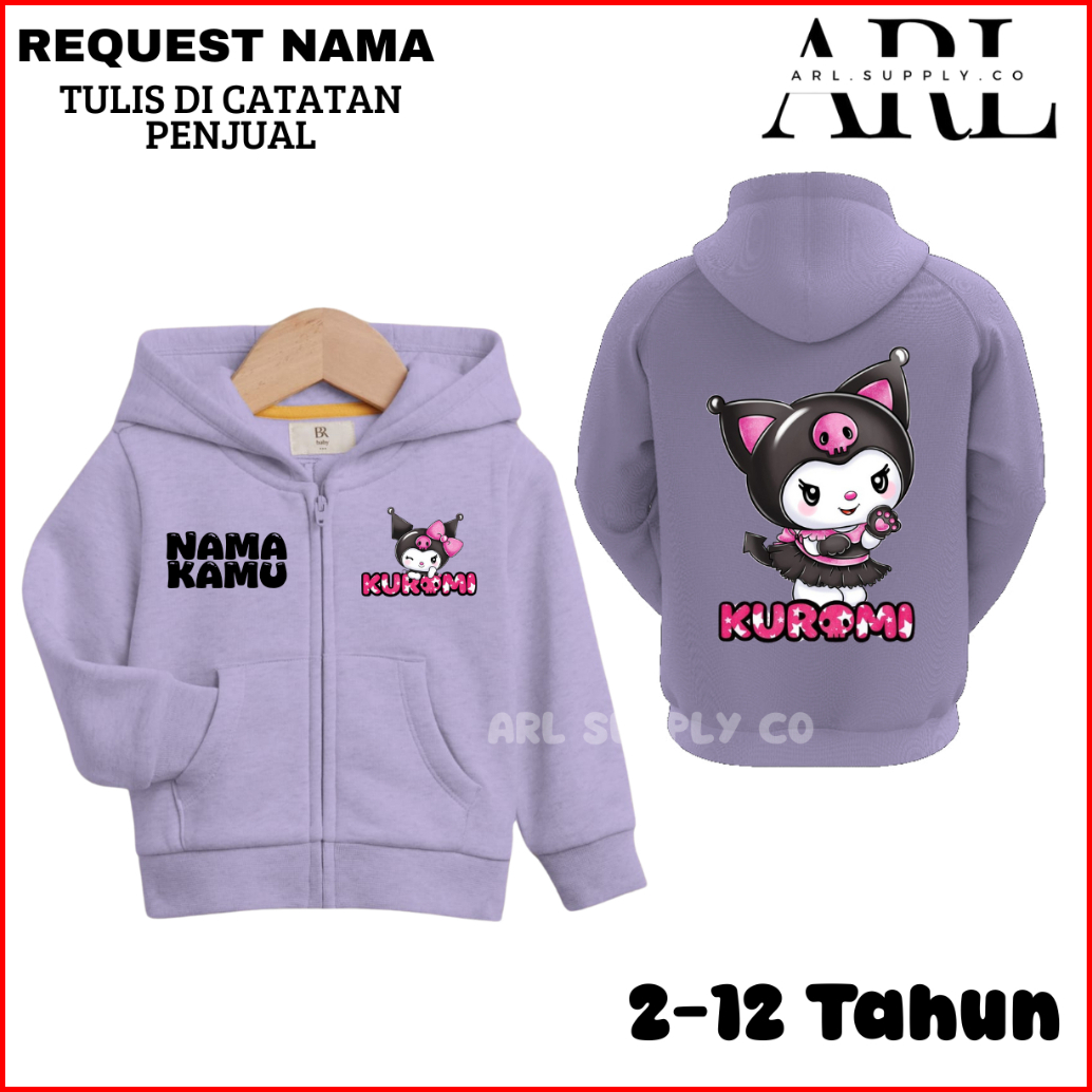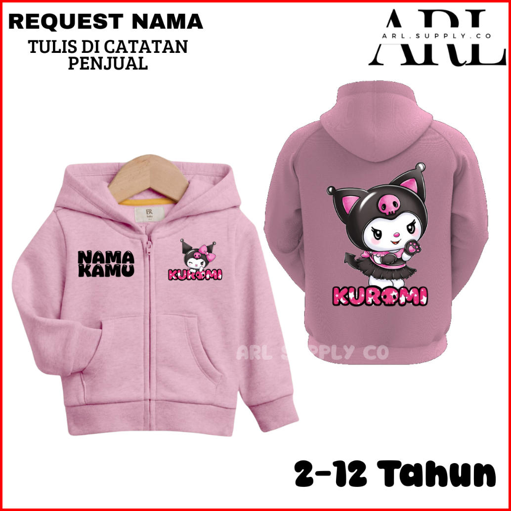 Arlsupply.co - Jaket Anak Perempuan Laki Laki Model Zipper Kuromi Free Stiker Nama Umur 2-12 Tahun
