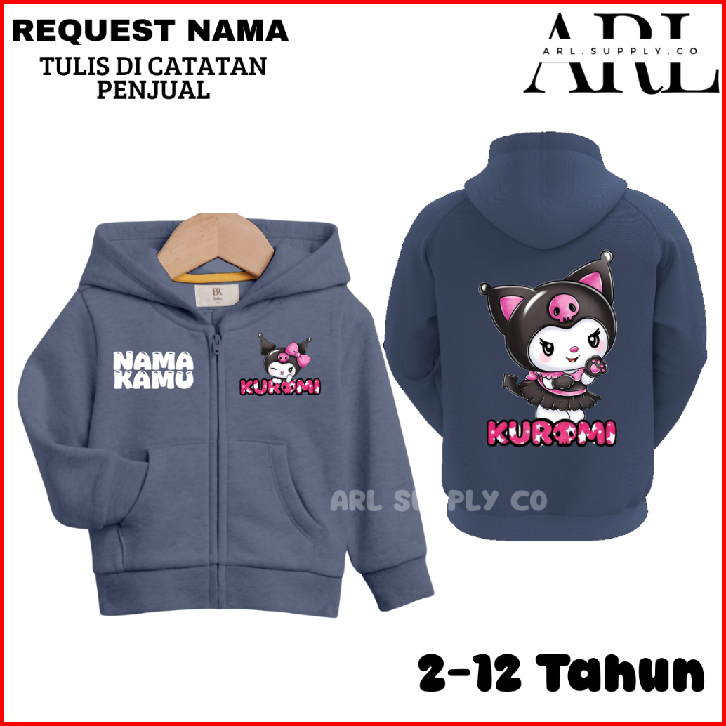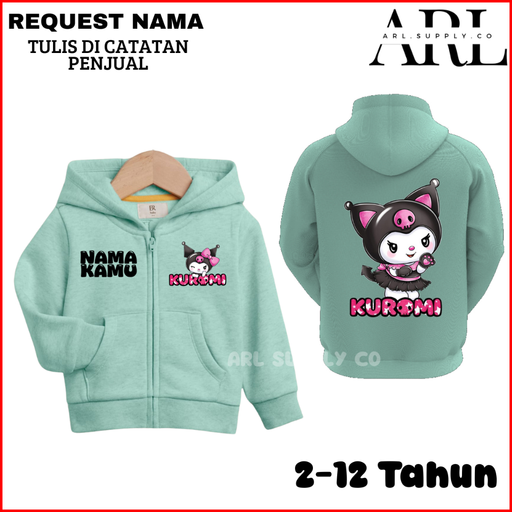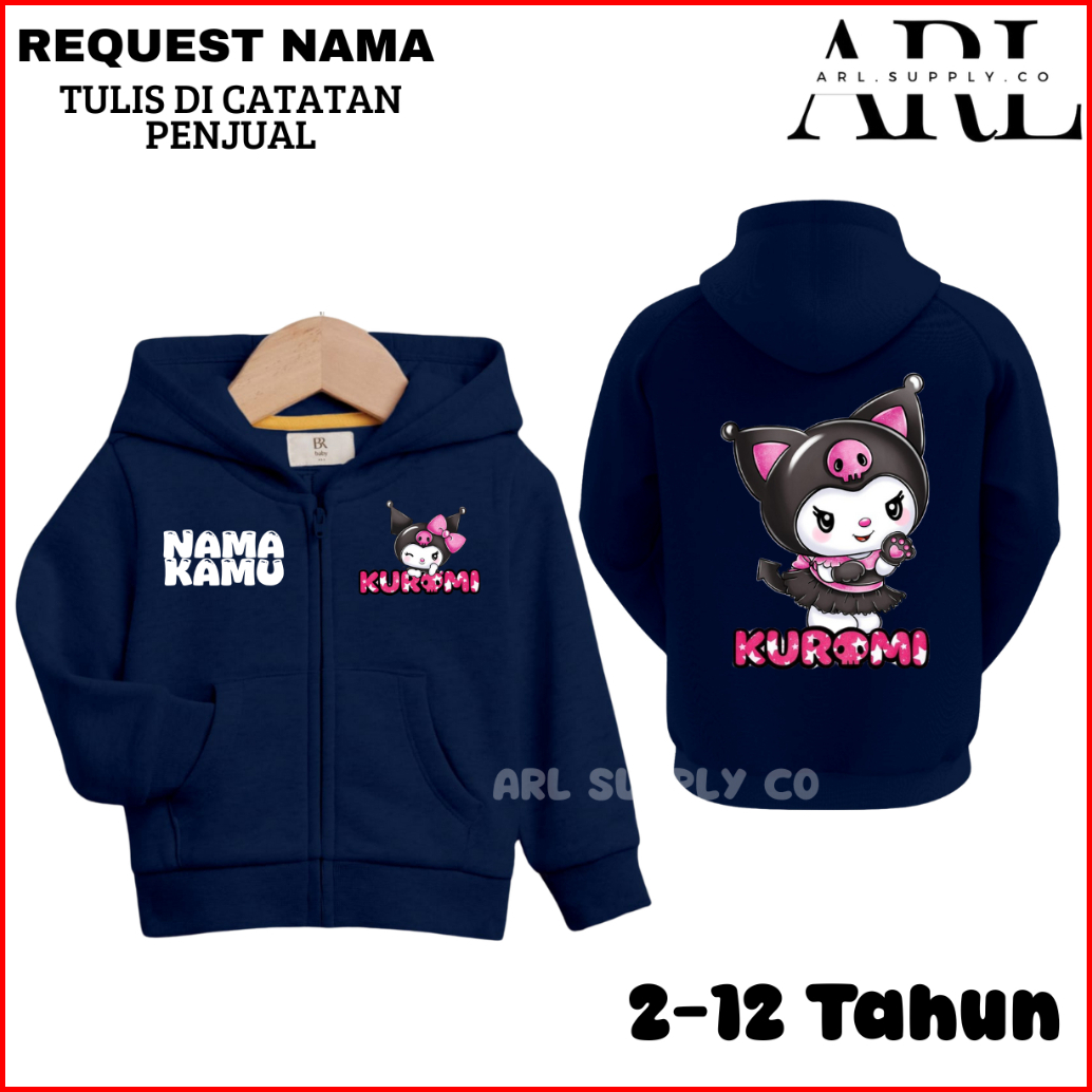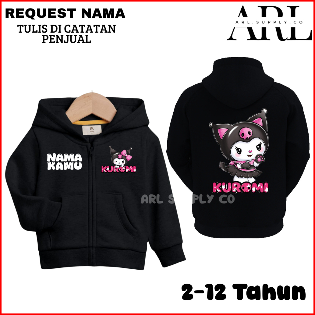 Arlsupply.co - Jaket Anak Perempuan Laki Laki Model Zipper Kuromi Free Stiker Nama Umur 2-12 Tahun