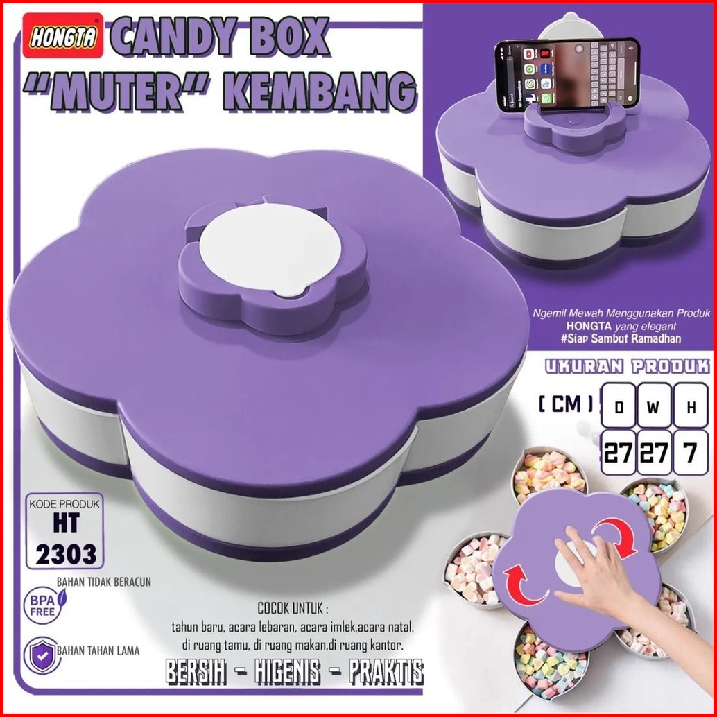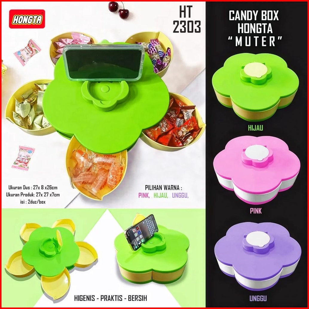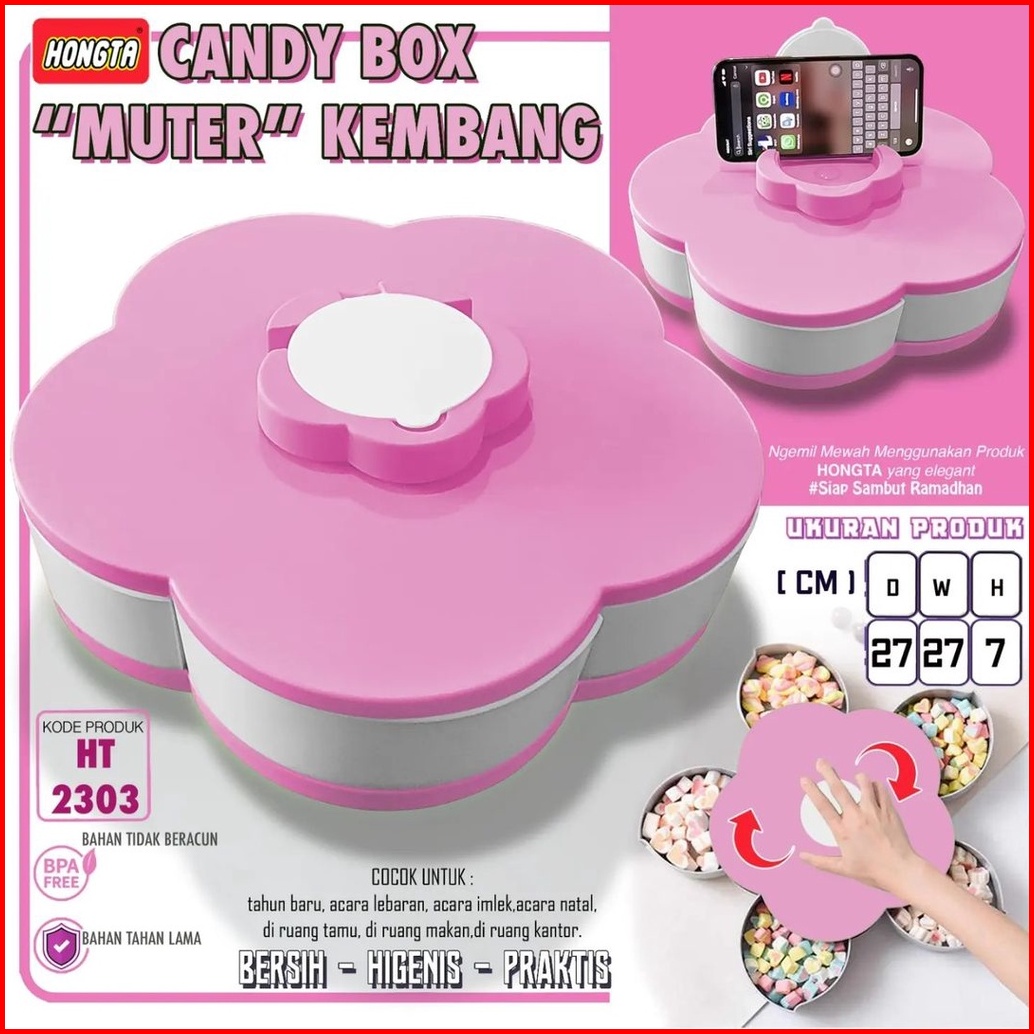Hongta - Toples Plastik Bunga Muter Tempat Kue Candy Snack Buah Toples Bunga Mekar Kode Ht - 2303