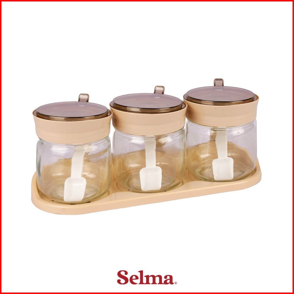 Selma Set 3 Pcs Lany Tempat Bumbu Dapur - Cokelat Seasoning Jar Toples Bumbu Dapur Wadah Garam Lada Blackpepper Spice Or