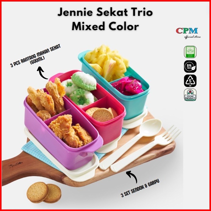 Cpm Jennie Trio Dengan Sekat Mixed Color 3 Set Sendok Garpu-exclussive