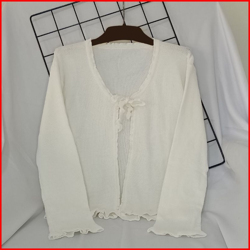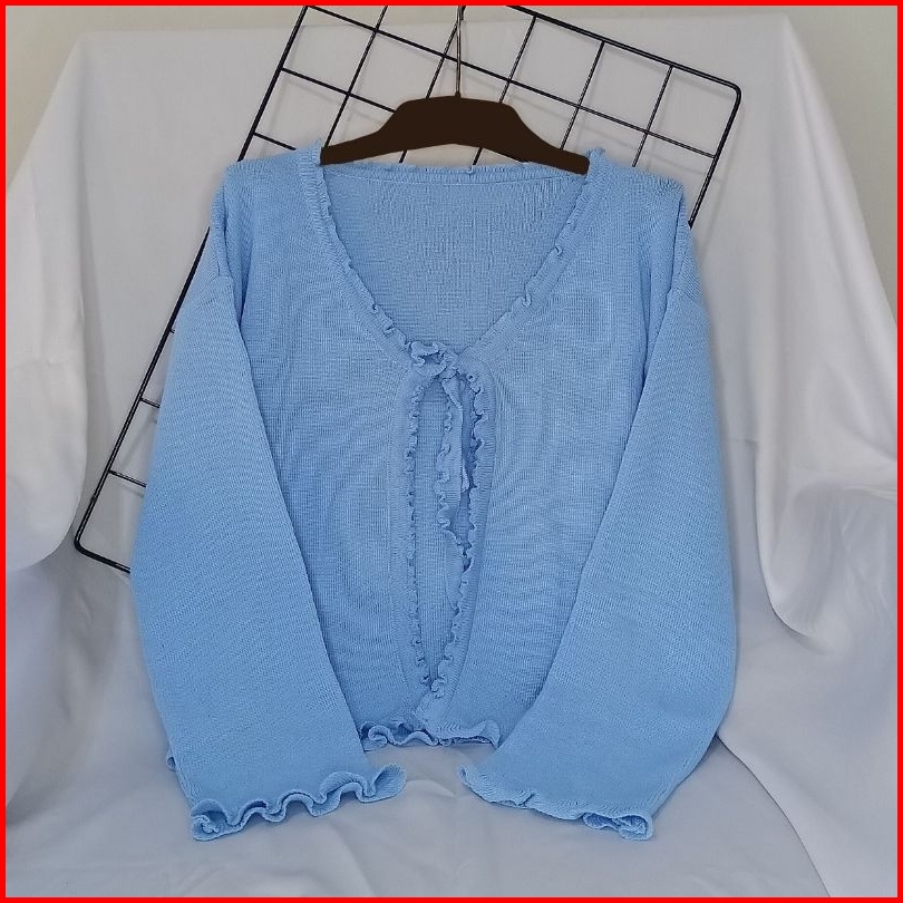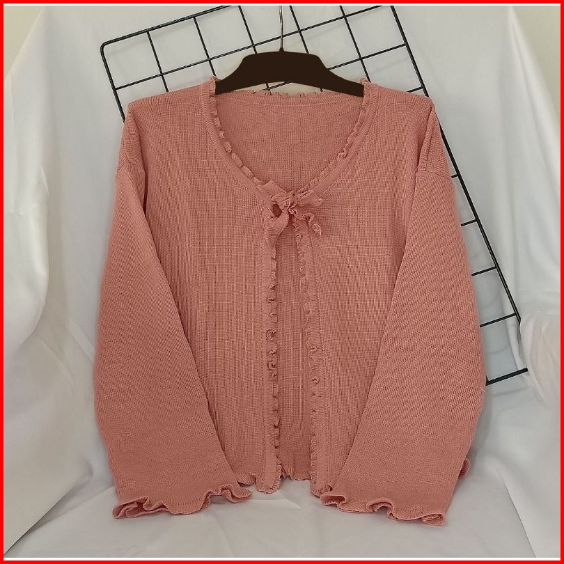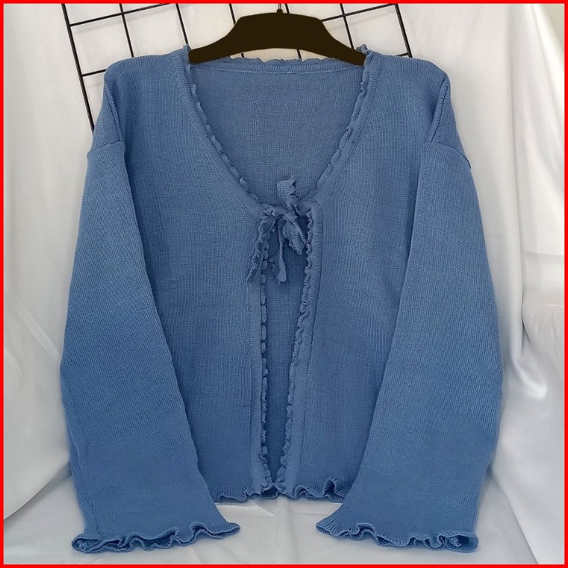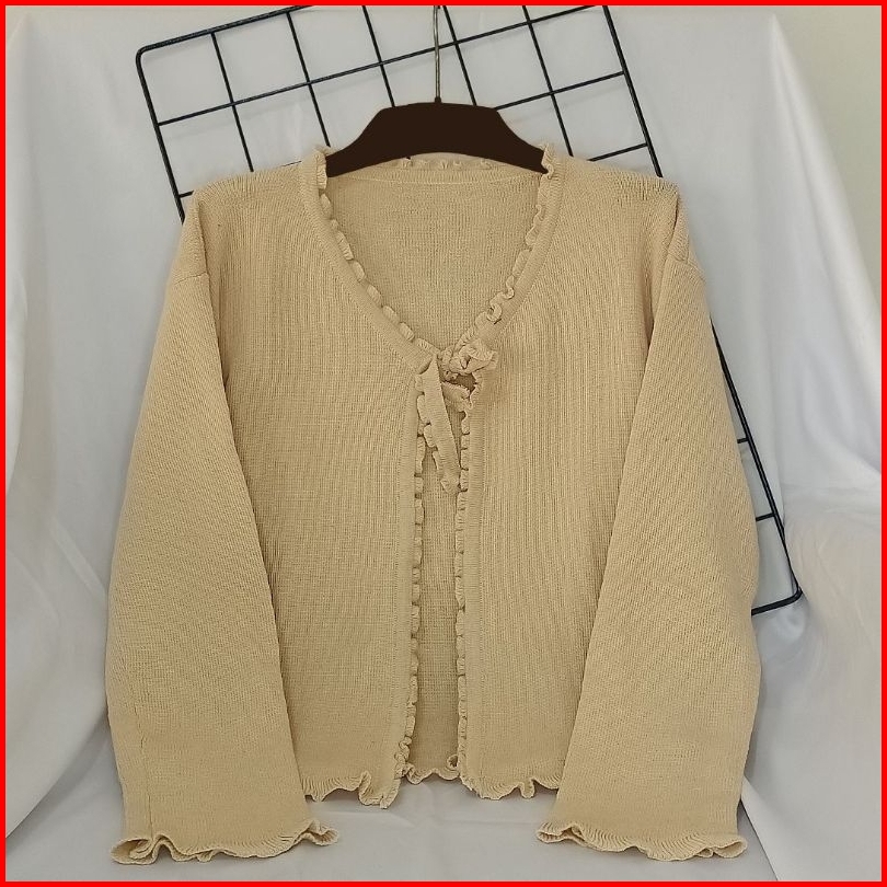 Cardigan Rajut Crop Tali Wanita - Outer Korean Style Simple Kekinian Lengan Panjang